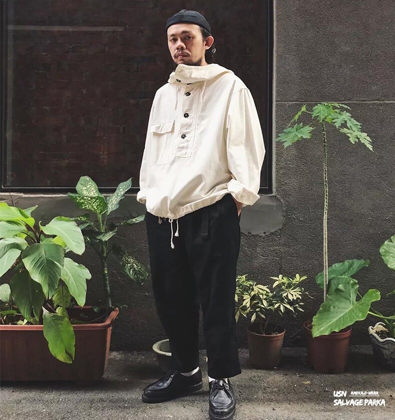 Maden brand tooling style tough guy men youth American 1940S retro World War II navy work clothes off-white coat herringbone half-cardigan protective male hoodie sweater