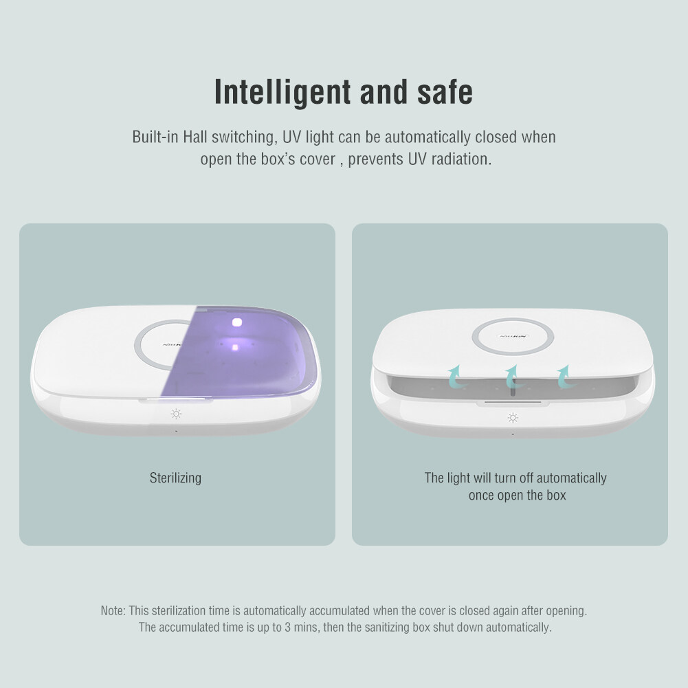 Nillkin FlashPure Pro UV sanitizing box with wireless charger Can be sterilized anytime and anywhere Sterilization rate reaches 99.5% for Phone / Watch / Headset / Jewelry