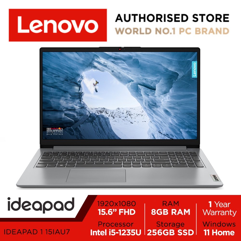 Lenovo IdeaPad 1 15IAU7 | 82QD0007SB | 15.6" FHD (1920x1080) | Intel Core i5-1235U | 8GB DDR4-3200 | 256GB SSD | Win11 Home | 1Y Lenovo Warranty