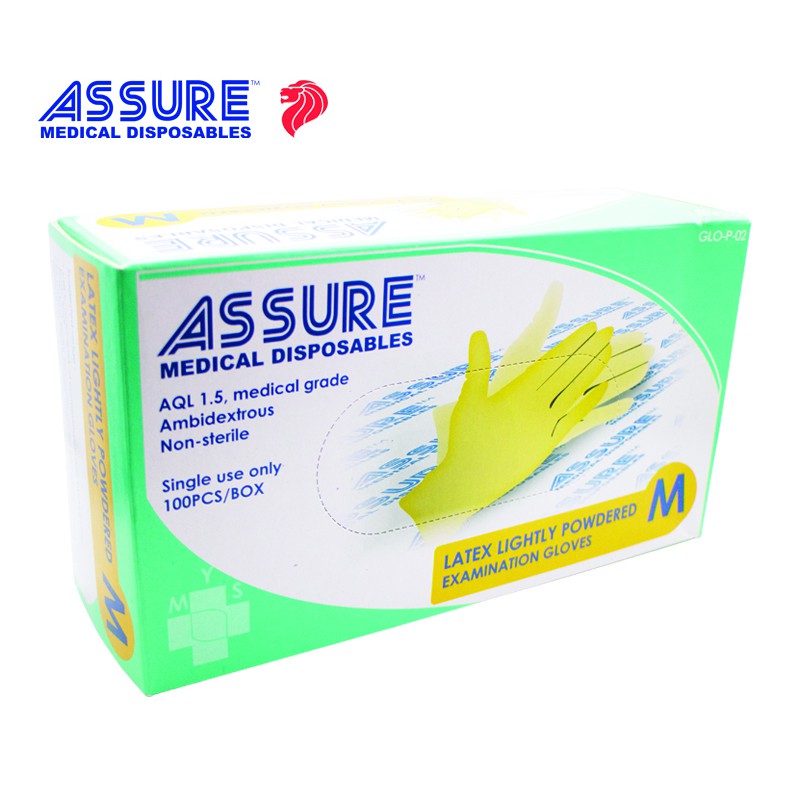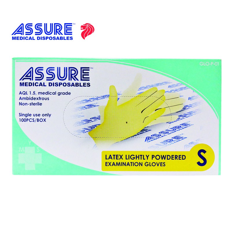 [Bundle of 3] ASSURE Latex Exam Gloves Powdered 100 Pce/Box