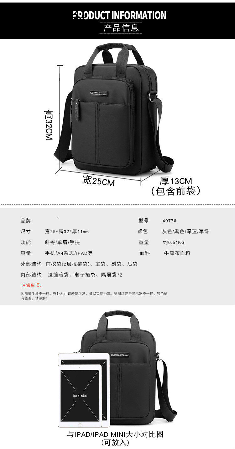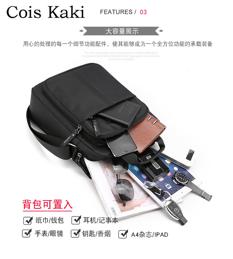 Cois Kaki New Sling Shoulder Bag For Men High Quality Nylon Business Casual Crossbody Large Capacity IPAD Bag Handbag