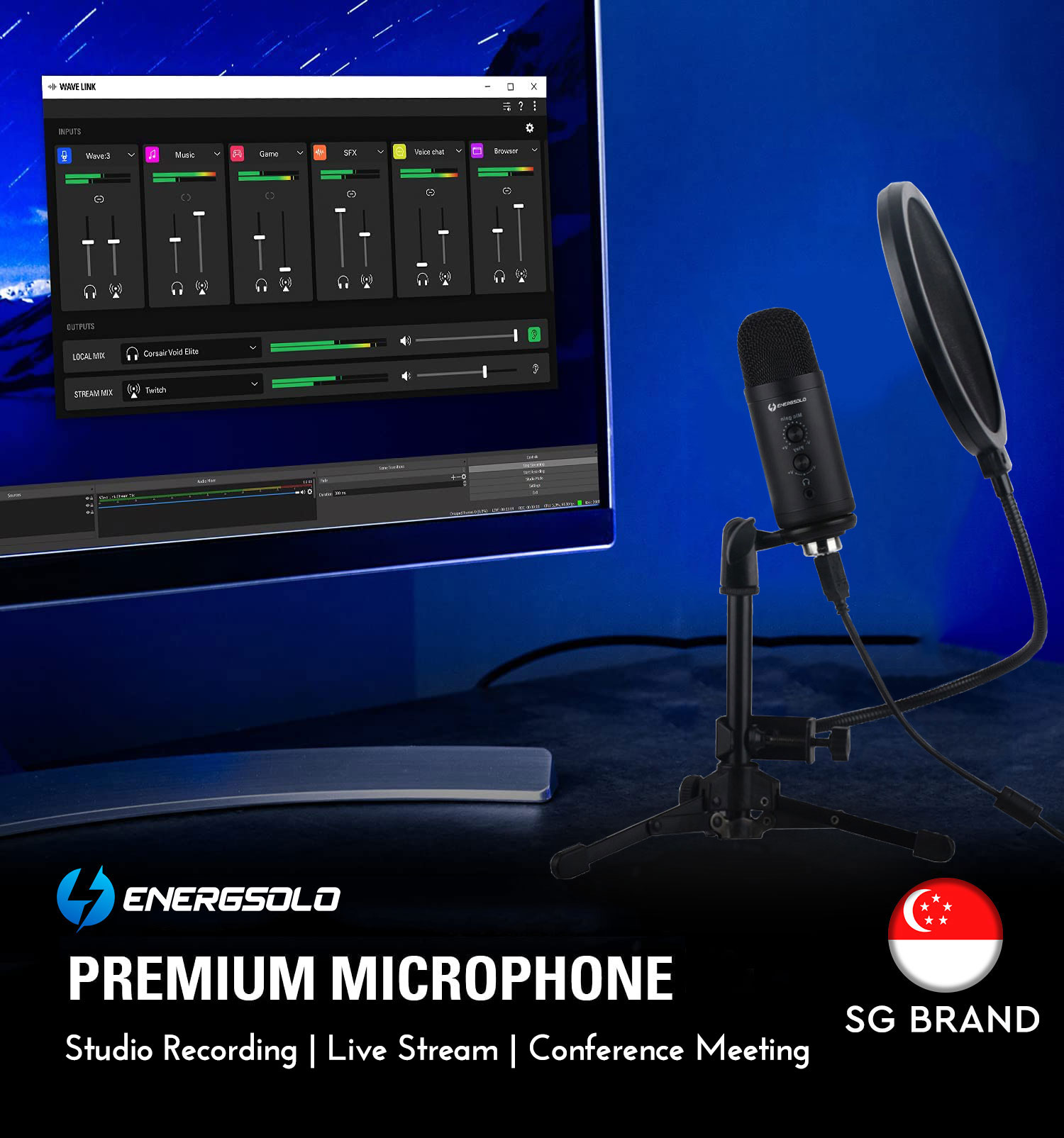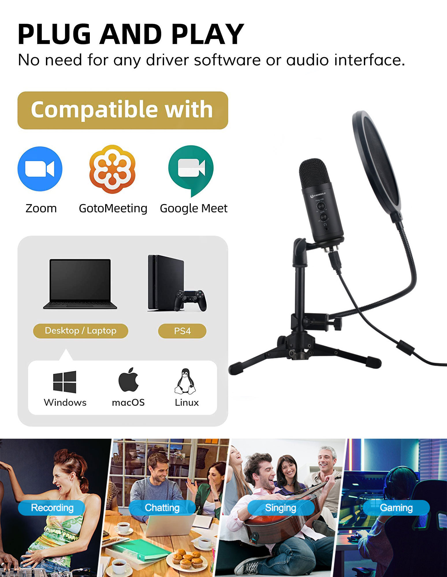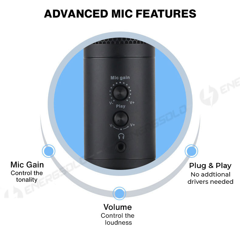 【SG ReadyStock】Energsolo Condenser Professional USB Microphone with Tripod for PC Mac Laptop (Designed in SG) Studio Mic Voice Recording Computer Podcast Live Streaming Wired Zoom Teleconference Singi