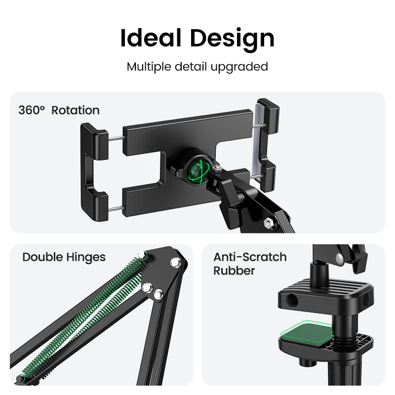 UGREEN Phone & Tablet Stand 360 Rotating Flexible Long Arms Tablet Stand Holder For 4-12.9'' Desktop Bed Lazy Metal Bracket Clamp for Samsung Vivo Xiaomi iPhone iPad Air Kindle E-Reader