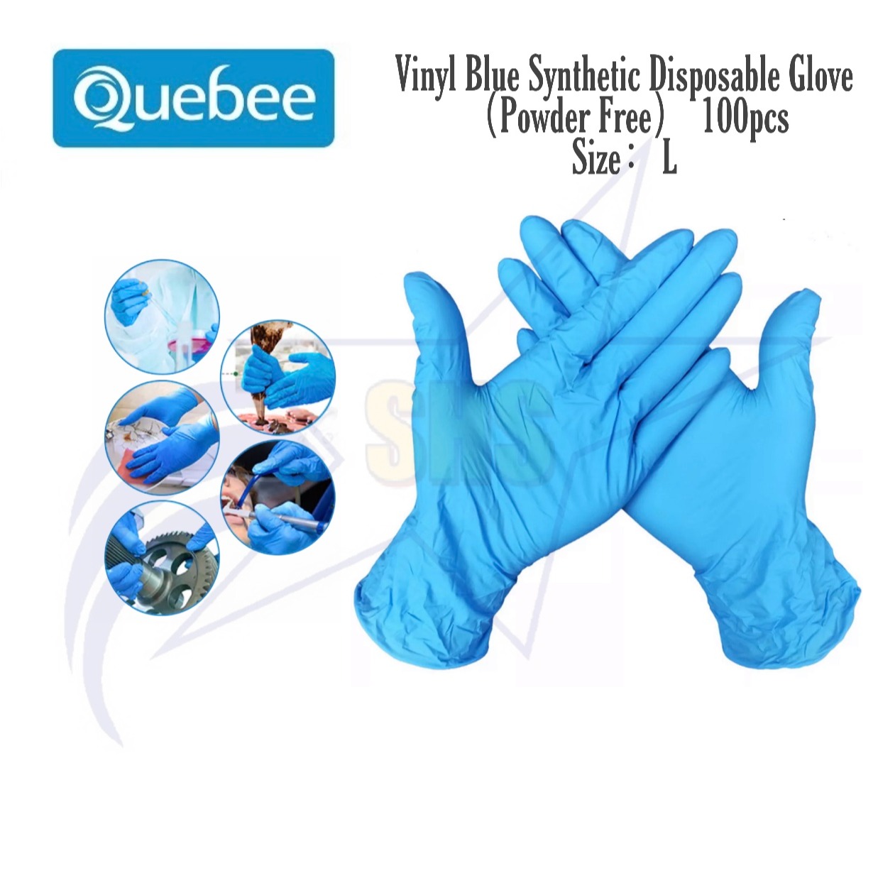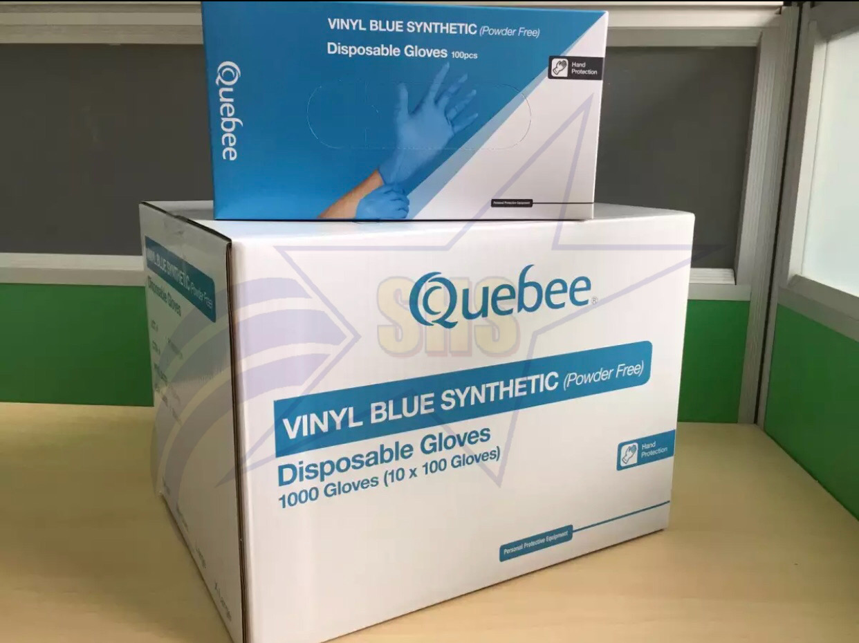 QUEBEE Vinyl Blue Synthetic Powder Free Disposable Gloves (100PCS/Box)