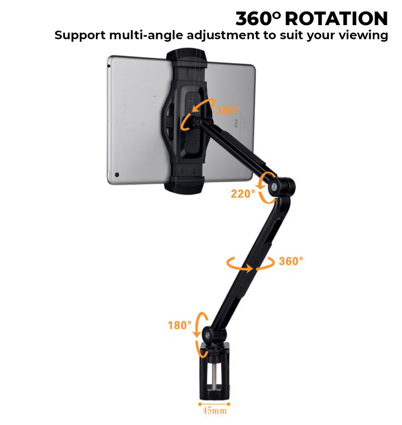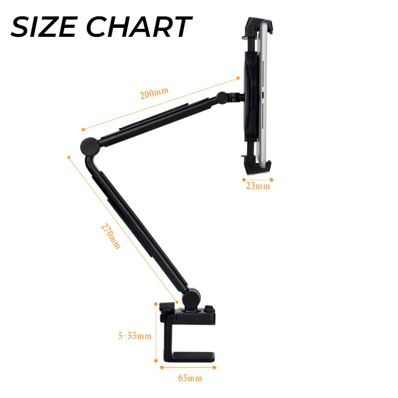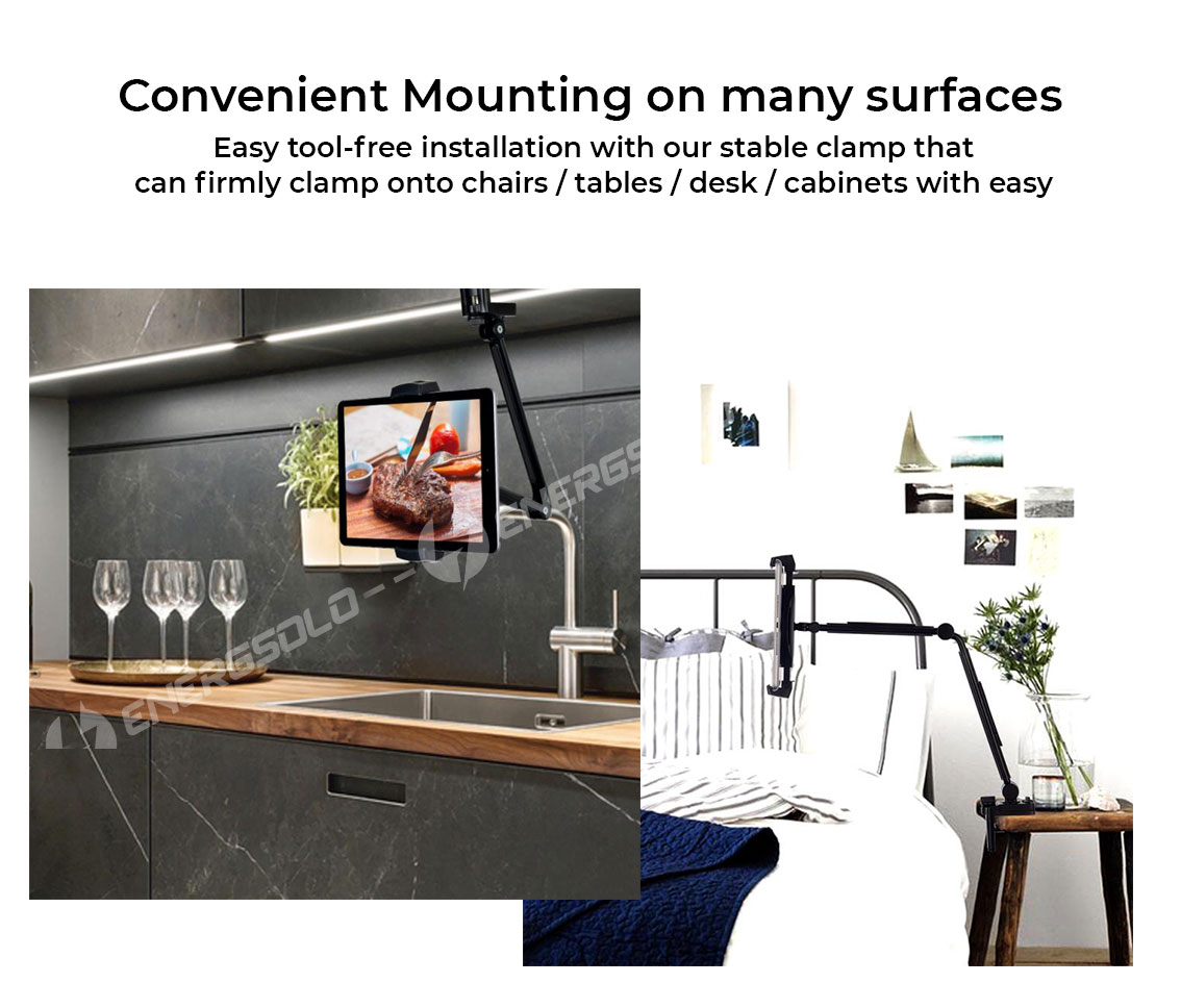 Energsolo Long Lazy Arm 360° Aluminum Adjustable Mobile Tablet Phone Holder ( 4 - 12.9 devices tablets ) Clamp Mount Table Stand
