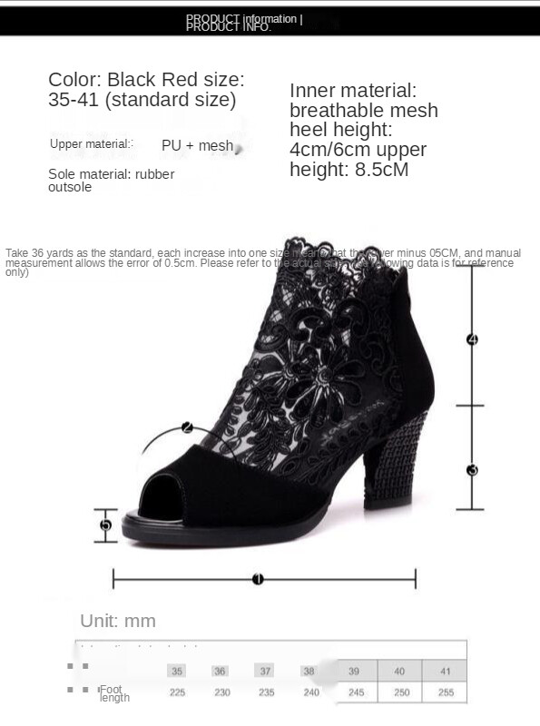 Sandals Women New Fish Mouth Shoes Mid-heel Large Size Sandals Breathable Mesh Shoes Ladies Lace High Heels