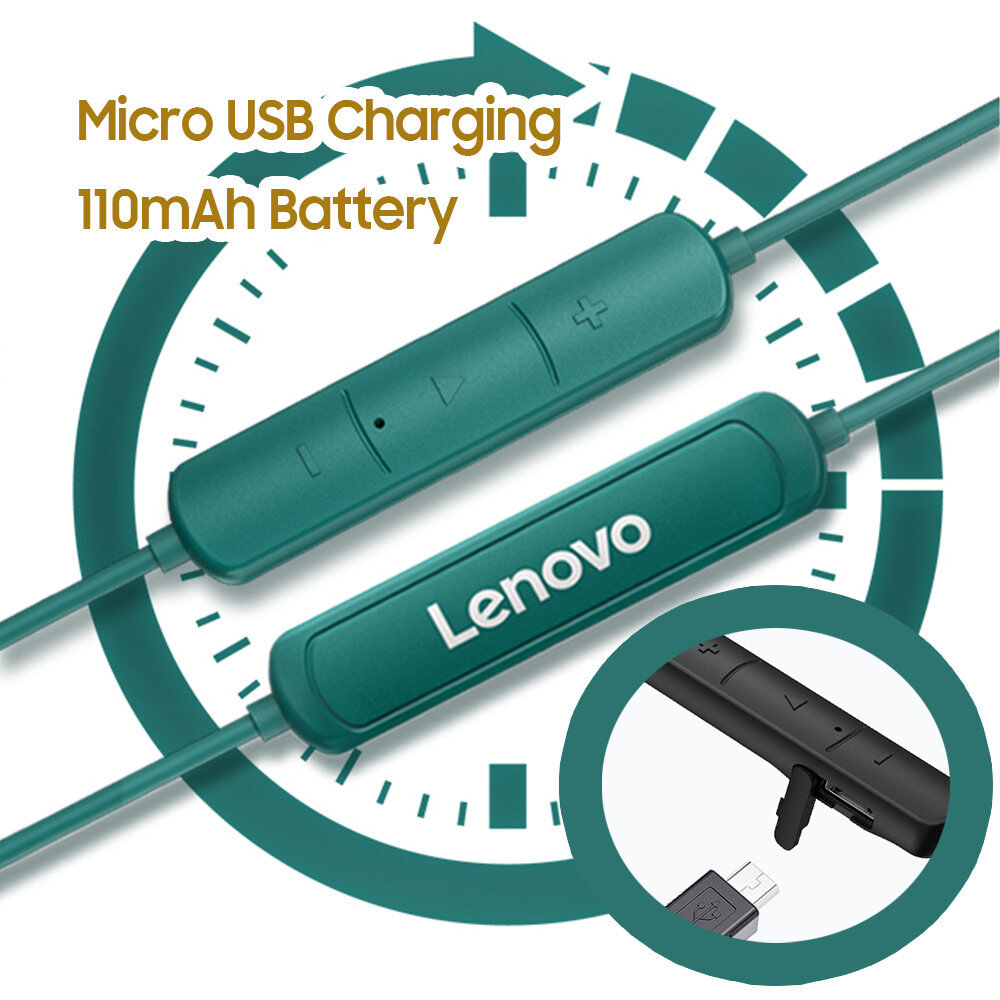 Lenovo SH1 BT5.0 Wireless Earphone Sport Headset with Dual Noise Reduction/Dynamic Driver/IPX5 Waterproof/Ergonomic In-ear Headphone for Sports/Music Compatible with iOS Android