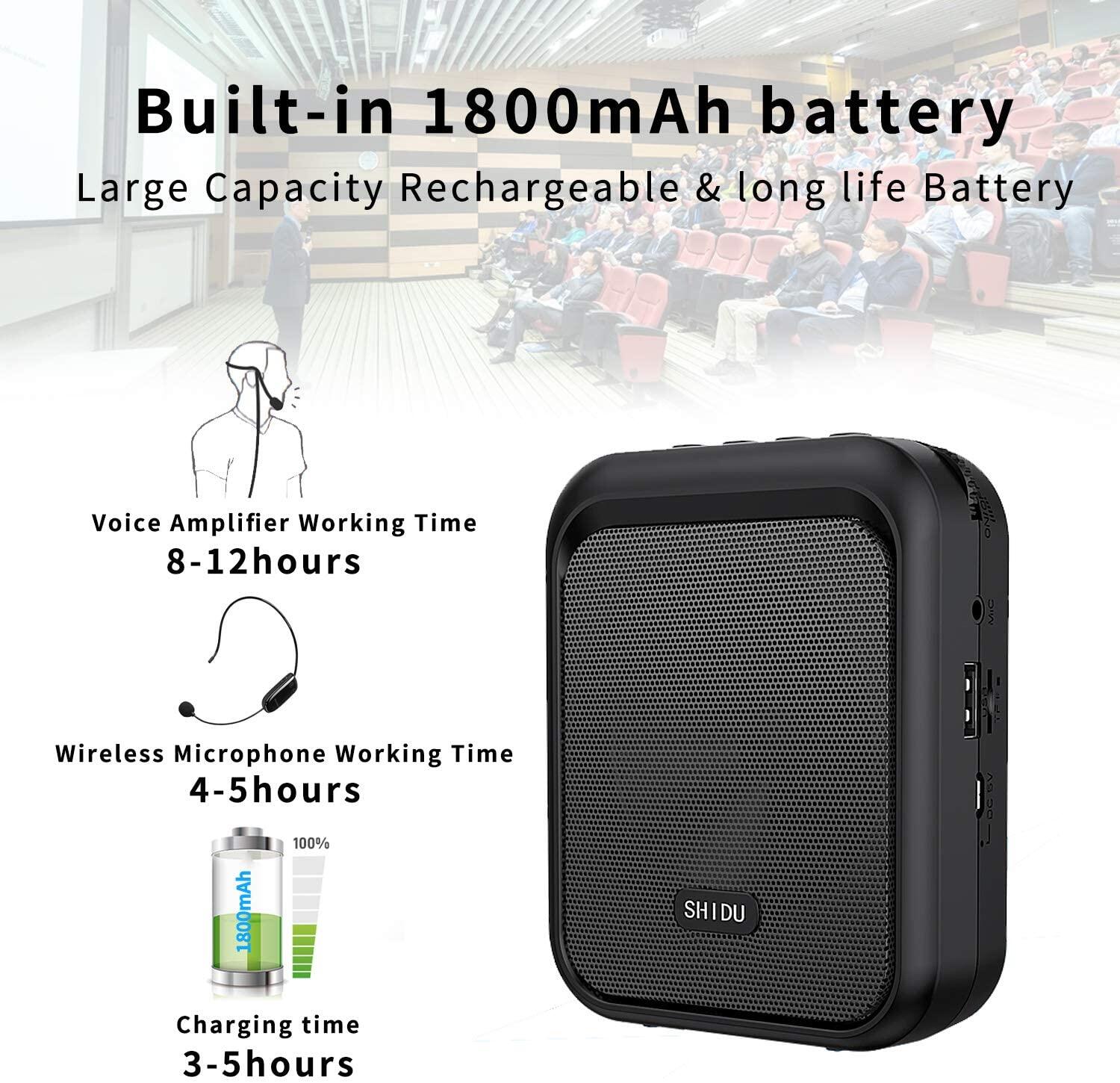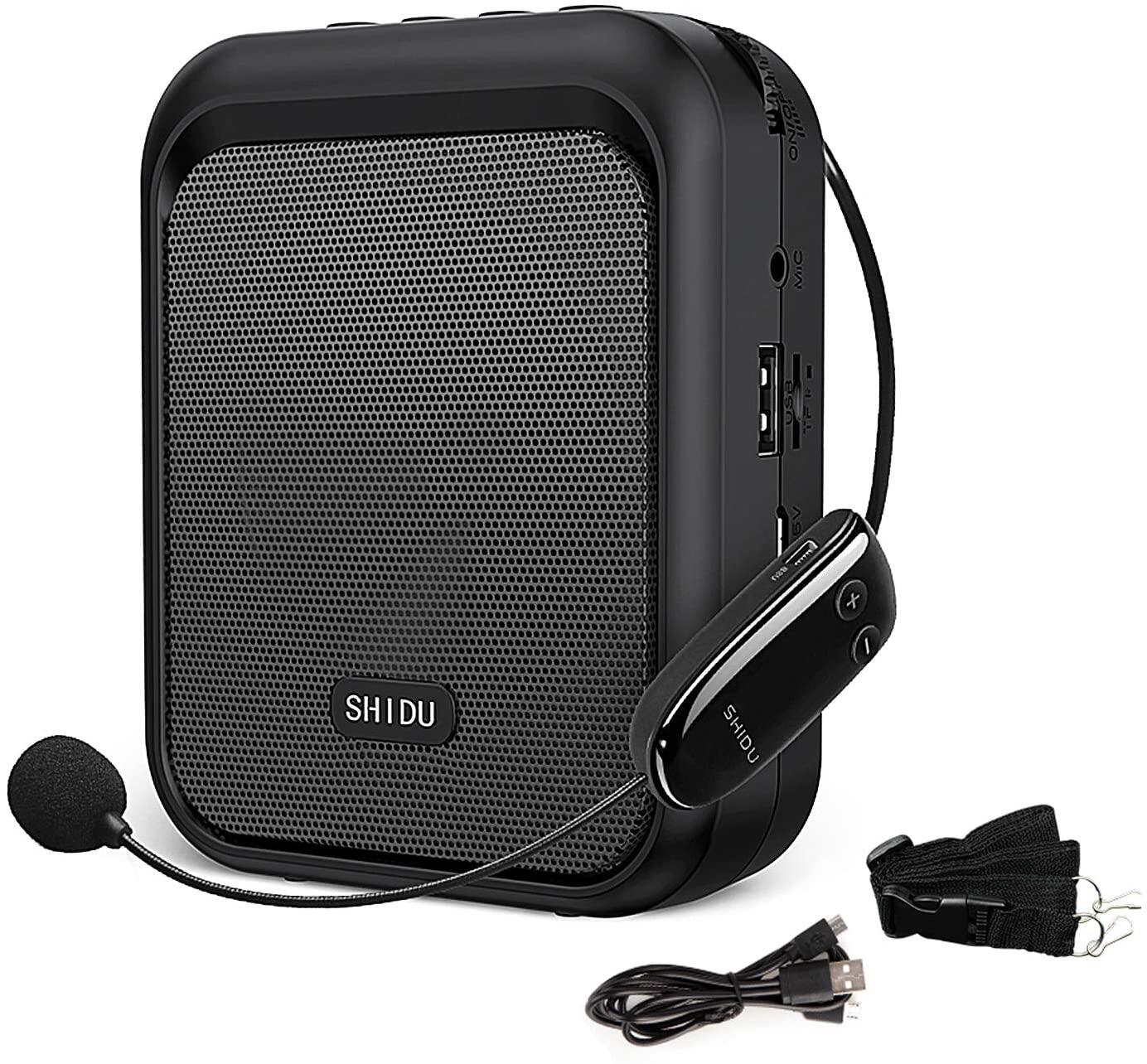 SHIDU S40 UHF Mini Voice Amplifier Portable Bluetooth Speaker with UHF Wireless Microphone Headset 10W 1800mAh PA system Supports MP3 Format Audio for Teachers, Coaches, Training, Tour Guide With Free