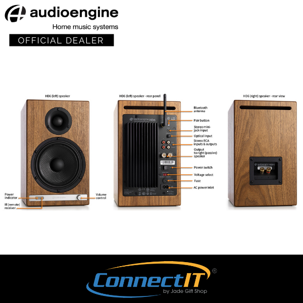 Audioengine HD6 Wireless Home Music System with aptX-HD/Aux/Analog In/Opt In/Sub Out (3 Years Local Warranty)