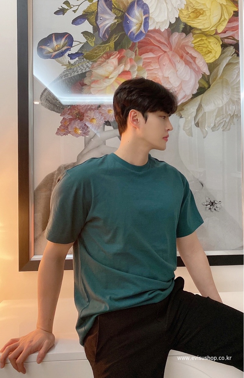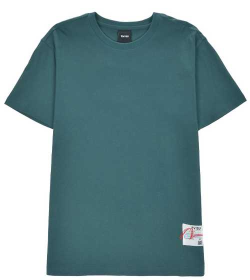 [EVISU KOREA] Loose fit Hem point label Round Short-sleeve T-shirt Casual Men Women Tee Couple Tops Cotton Street Style Korean Fashion