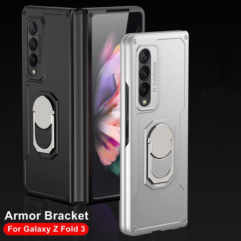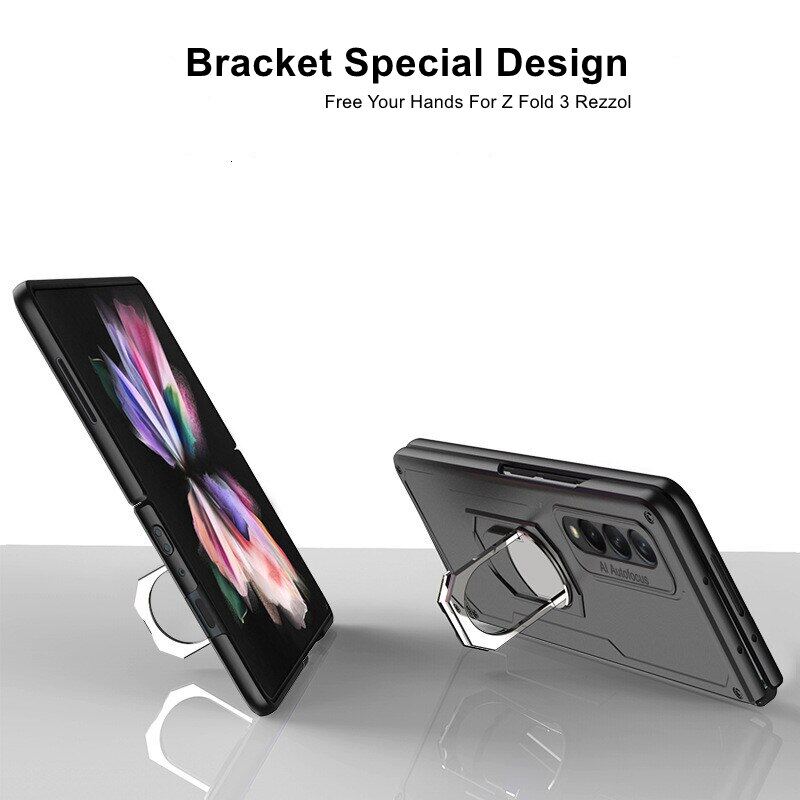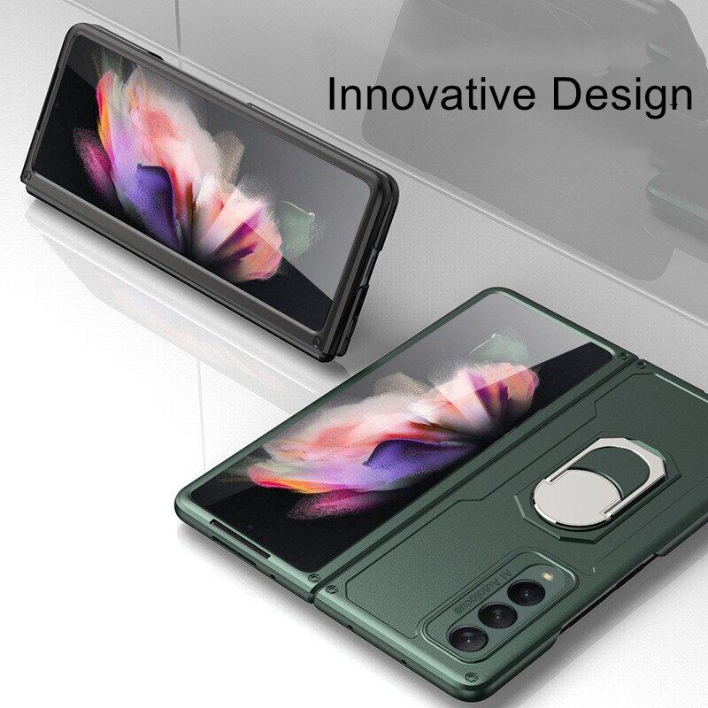 KISSCASE Suitable for Samsung Galaxy Z Fold 3 All-inclusive Mobile Phone Camera Metal Ring with Ring Bracket Shockproof Foldable Mobile Phone Case