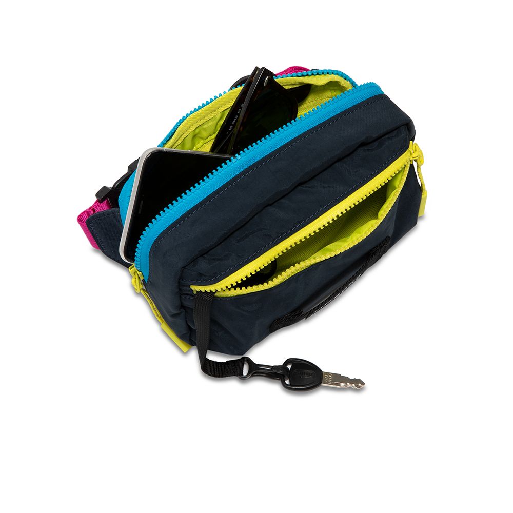 Like a handy little sidekick, the Rascal is an able partner for those on the go. Whether youre rocking it at a music festival or immersed in a crowded cityscape, it keeps your hands free and your mind in the moment, by storing your gear close to the hip. A front zip pocket gives you quick access to keys and sunglasses, while the main pocketing is perfect for cash, cards, and a phone. If youre not feeling it as a fanny pack, simply loosen the straps and wear it as a crossbody sling.