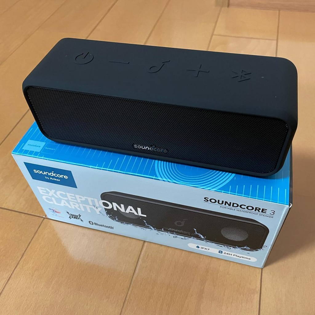 Soundcore 3 by Anker Soundcore, Bluetooth Speaker with Stereo Sound, Pure Titanium Diaphragm Drivers, PartyCast Technology, BassUp, 24H Playtime, IPX7 Waterproof, App, Custom EQ, Home, Outdoor, Beach