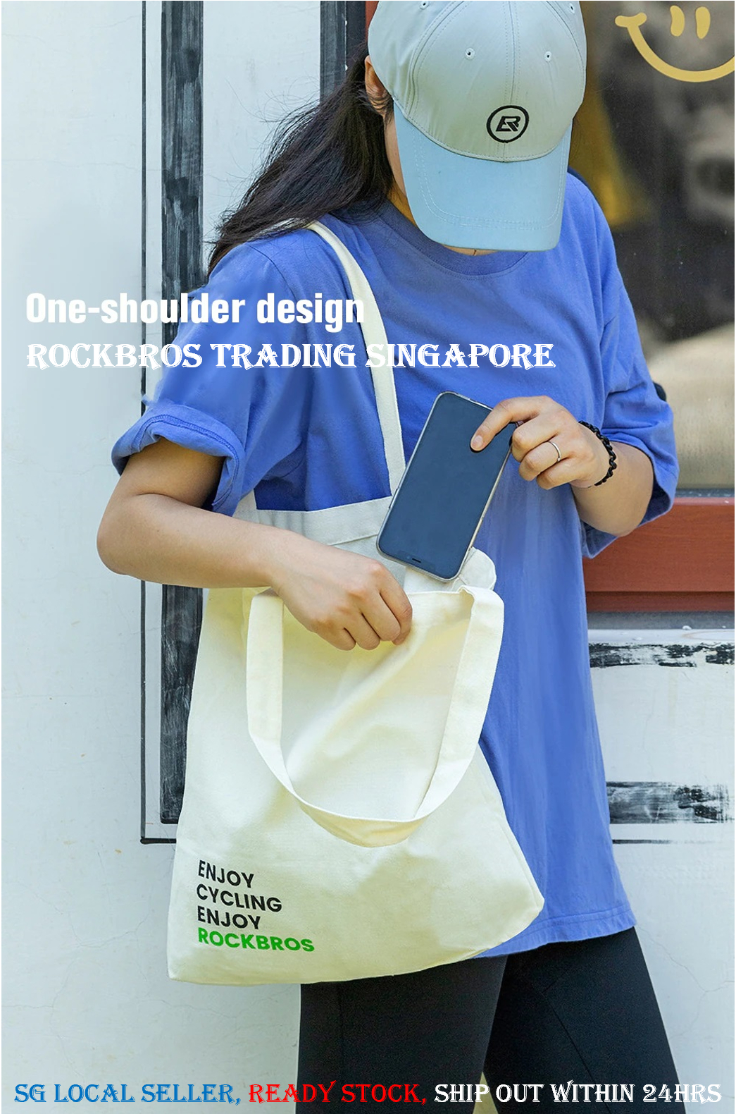 [SG SELLER] ROCKBROS Canvas Bag Men Women Large-capacity One-shoulder Shopping Tote Bag Fabric INS Lifestyle Shoulder Bag Handbag