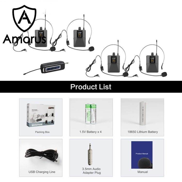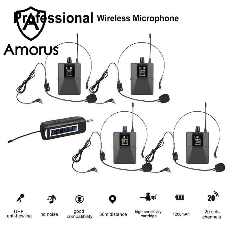 Amorus SHENGFU PRO-15CT Head Mounted and Lavalier UHF Wireless Microphone System with 1 Receiver + 4 Transmitters