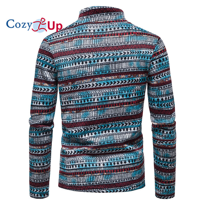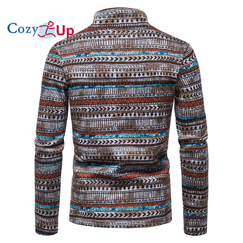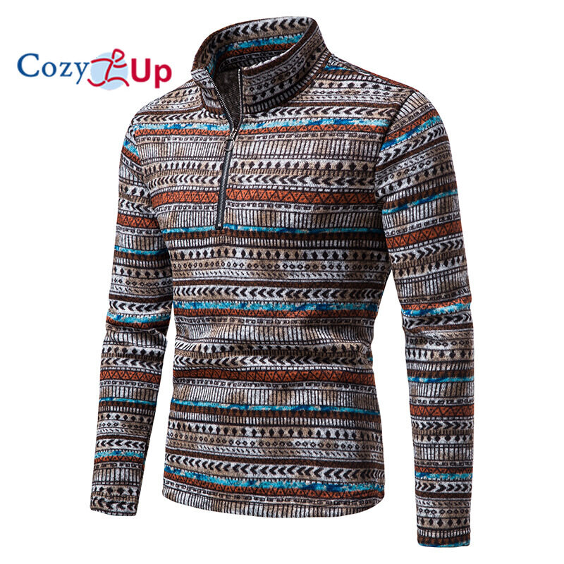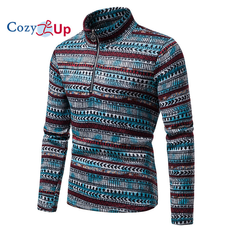 Cozy Up Men Long Sleeve Sweater Zip Access Control Stand Collar Casual Batik Pullover