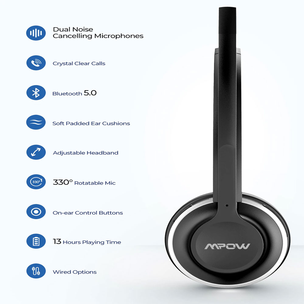 [Mpow] HC3 Bluetooth 5.0 Wireless Mono Headset with Microphone with Dual Noise Canceling, Wired and Wireless useable