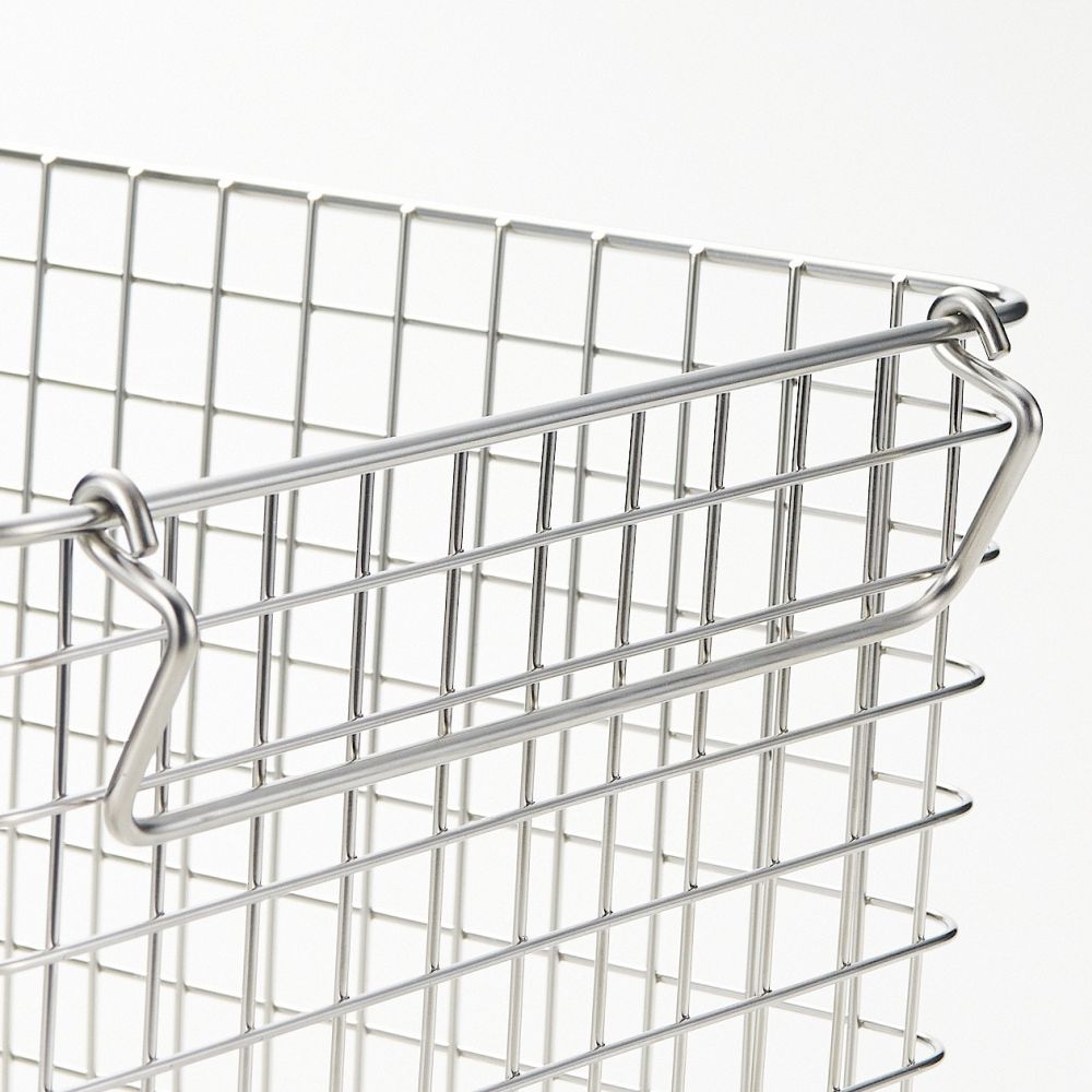 A basket made of stainless steel that does not easily rust. You can also stack by putting the handle inside.