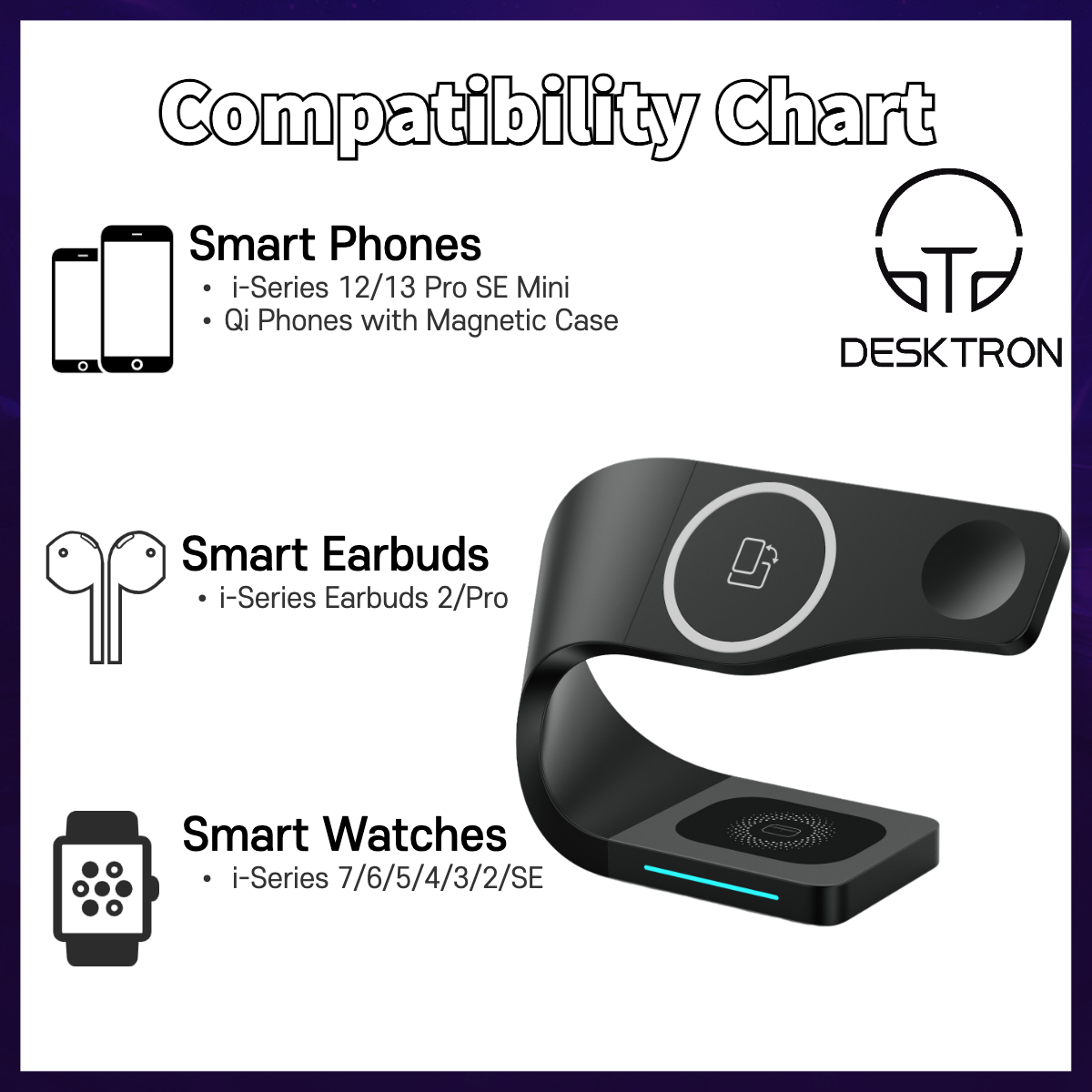 DESKTRON 4-IN-1 Magnetic Wireless Charger, 15W QI Fast Charge iPhone Wireless Charging Dock with Magsafe Magnetic Function Home/Office Desk Organizer for For iPHONE 12 13 Airpods iWatch | SG LOCAL STO