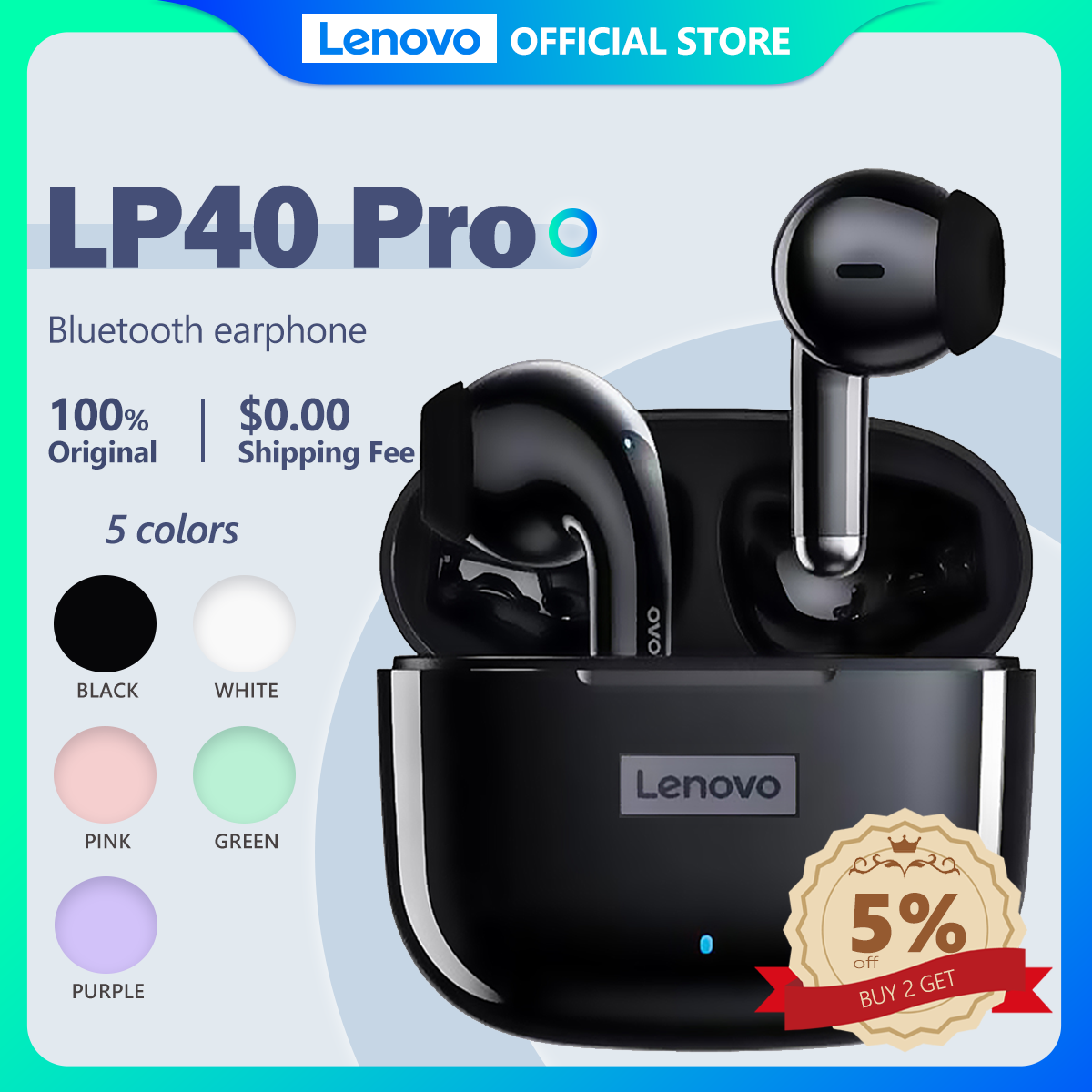 Lenovo LP40S 2021 New Version LP40 IPX5 True wireless Earphone Bluetooth 5.1 Earbuds Low latency Gaming TWS headset with mic HD Music Earpods headphone Earpieces Microphone audio Sports earpod 5.0