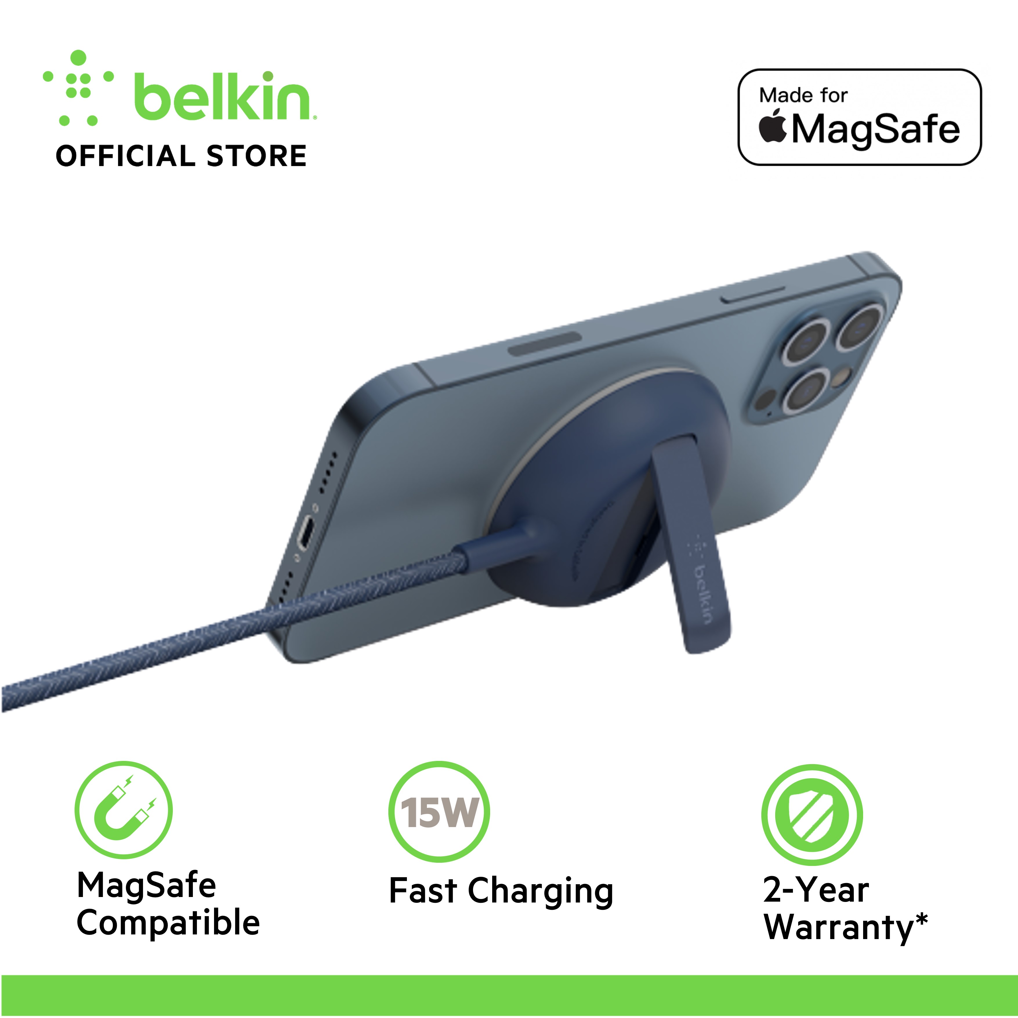 Belkin WIA004bt BoostCharge PRO Portable Wireless Charger Pad with MagSafe 15W (iPhone 14/13/12)