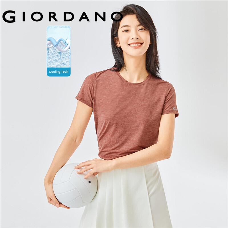 GIORDANO Women T-Shirts G-MOTION High-Tech Cooling Lightweight T-Shirts Stretchy Crewneck Short-Sleeve Print Casual Tee 05322411