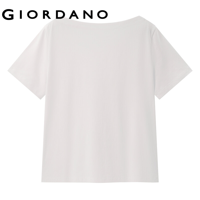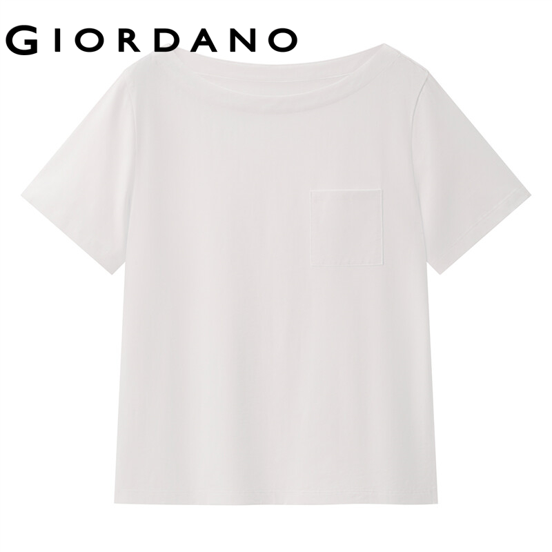 GIORDANO Women T-Shirts Short Sleeve Single Patch Pocket T-Shirts 100% Cotton Boat Neck Casual Basic Summer T-Shirts 13322204