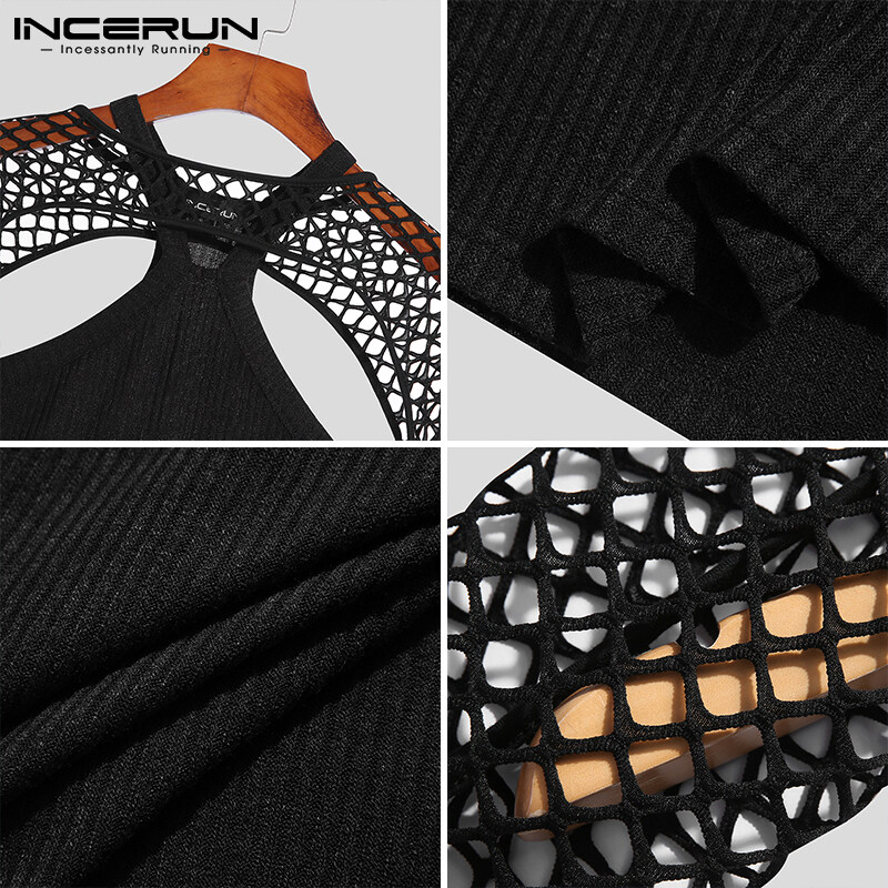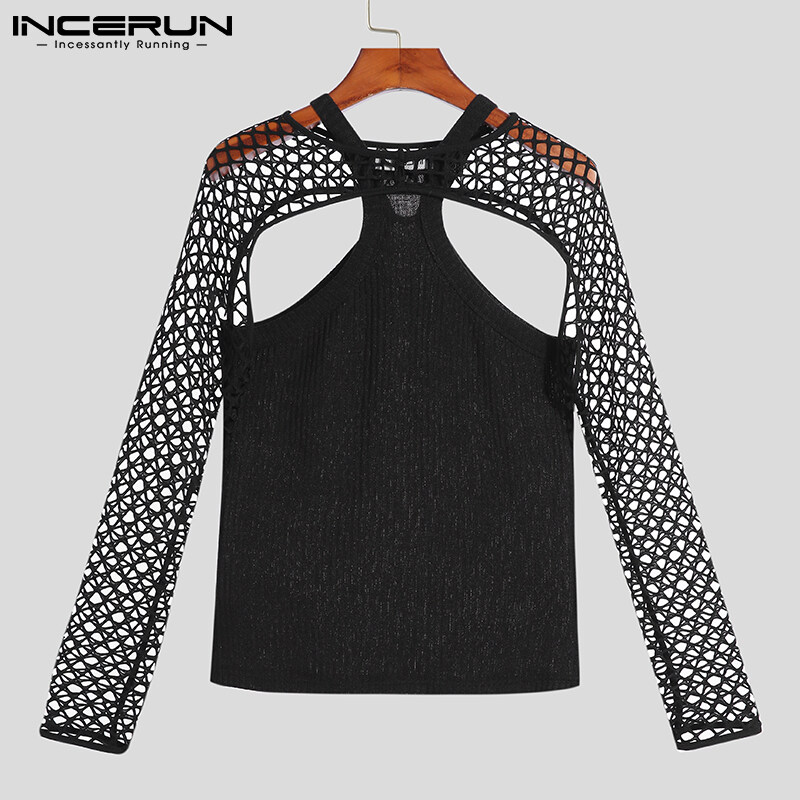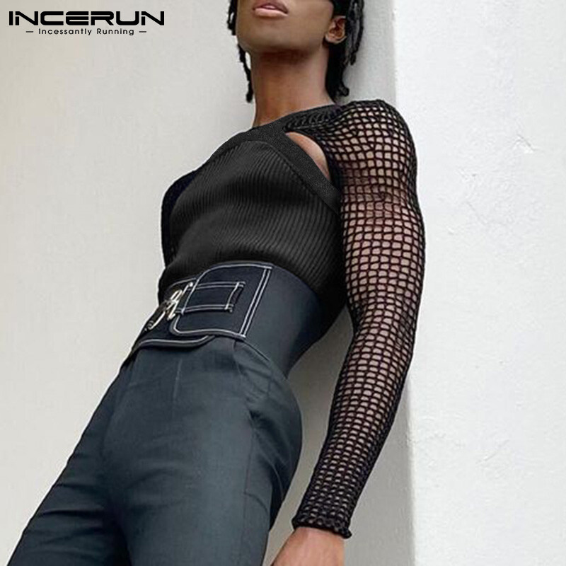 INCERUN Mens Hippy Punk Long Sleeve Fishnet Hollow Out Crop Tops Muscle Vests Fancy Dress (Western Style)