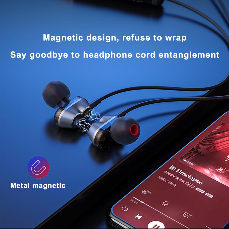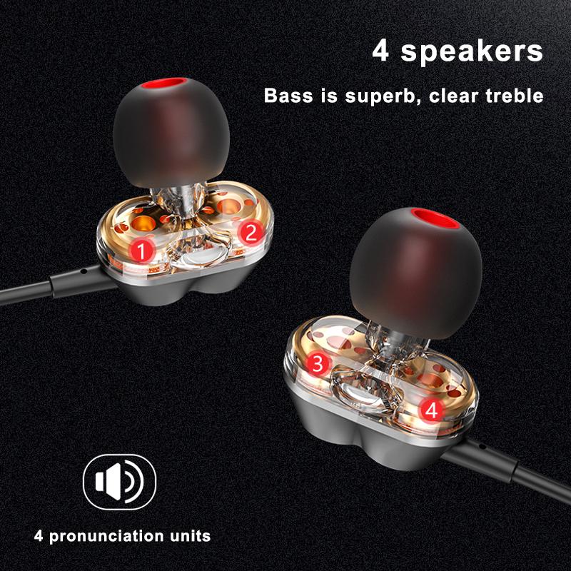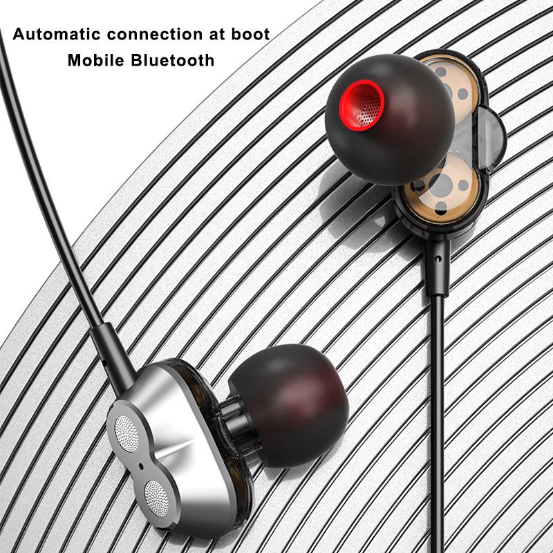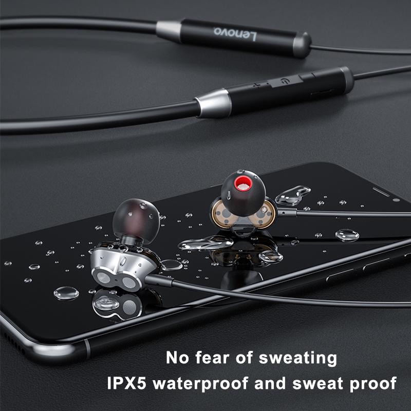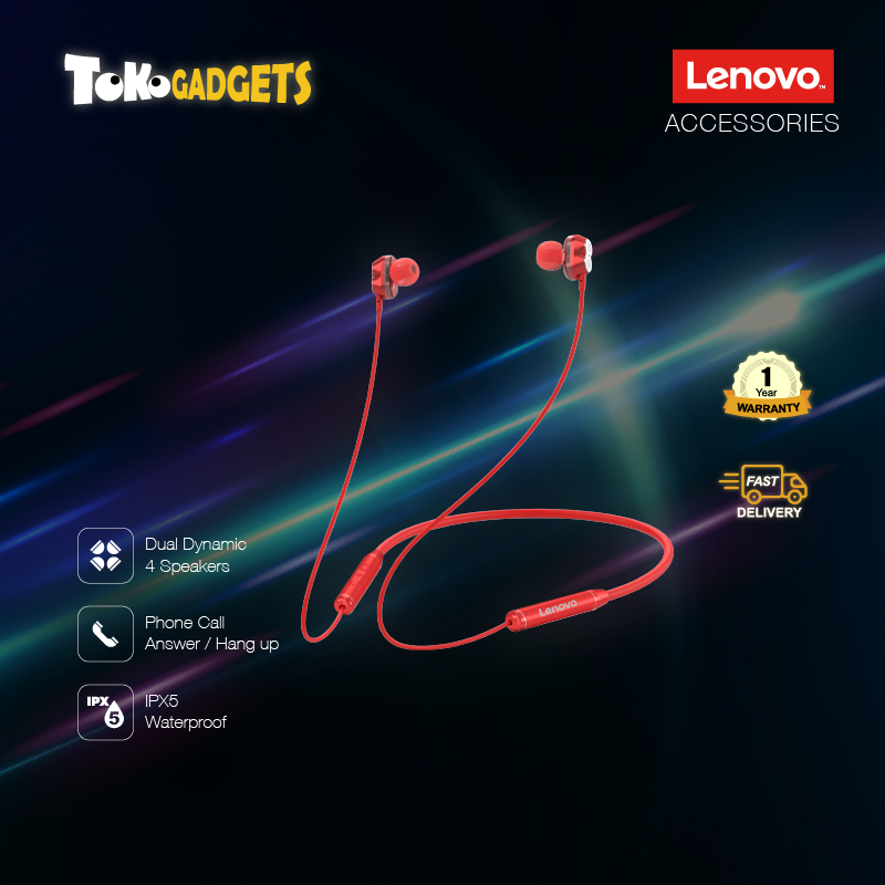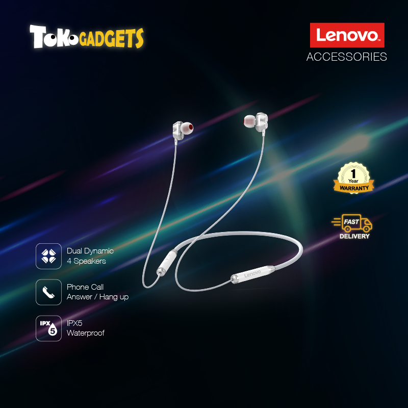 Lenovo HE08 Neckband Wireless Bluetooth Earphone In-Ear Headset with Mic Sweatproof (Dual Dynamic 4 Speakers) - 1 Year Warranty