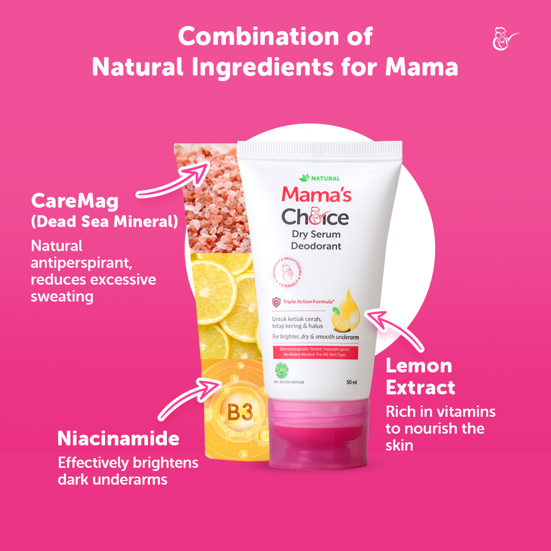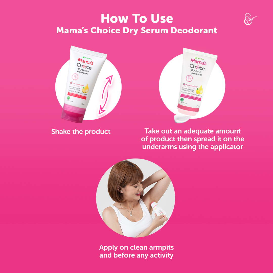 Did you know that normal deodorants are often formulated with aluminum, which may not be the best choice for pregnant or breastfeeding mamas? Mama’s Choice Dry Serum Deodorant brightens, nourishes, and helps control excessive sweating without all the harmful ingredients.
