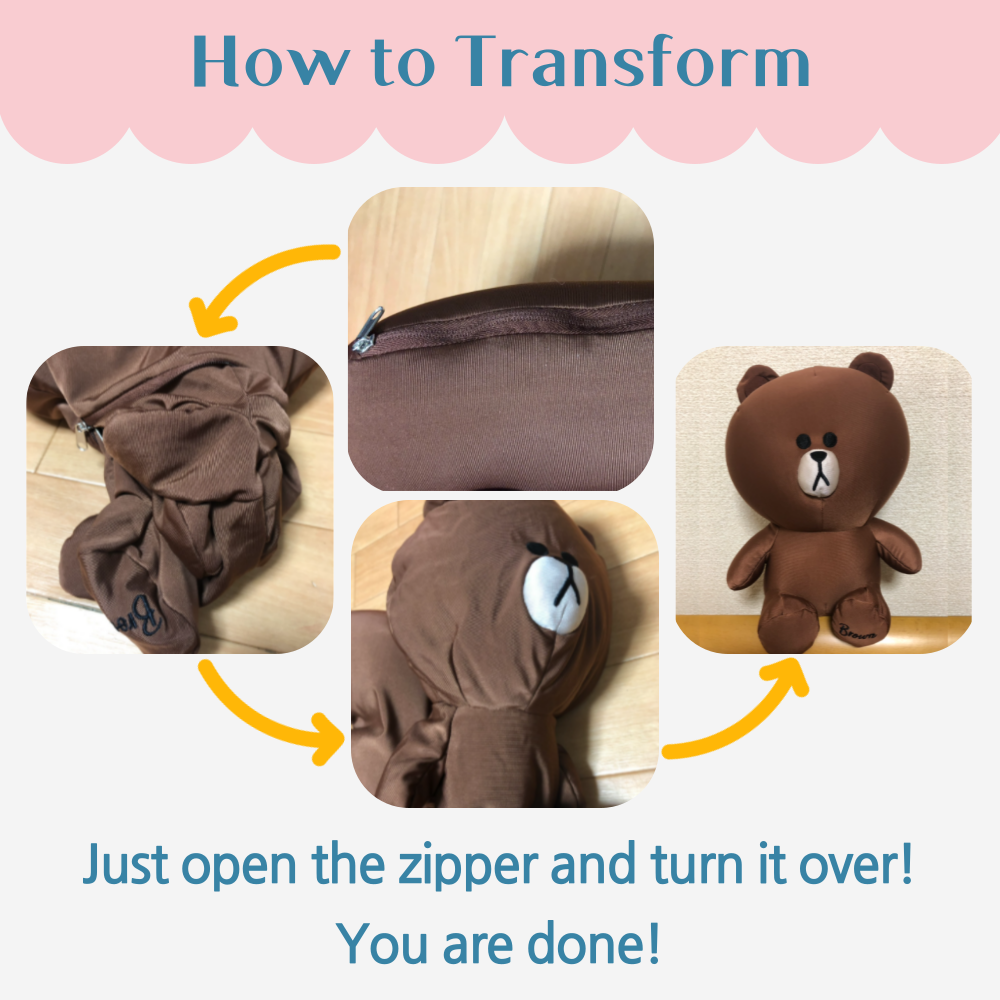 Use it as a neck pillow on an airplane, bus or train, then transform it into a Brown/Sally doll when you're lonely and bored!