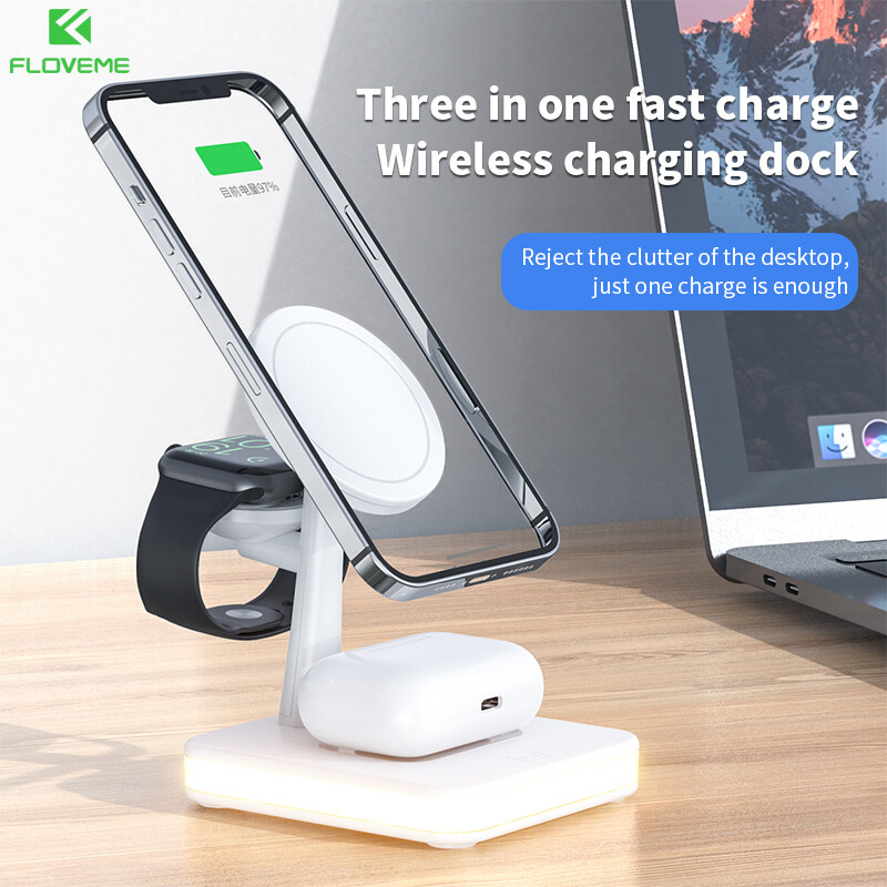 Floveme 25W Qi Magnetic Attraction Fast Wireless Charger for IPhone 14 Pro Max 13 12 11 Apple Watch 4 In 1 Charging Dock Station Airpods Pro Qi Fast Charging Dock Station For Apple Watch 8 7 6 5 4 3