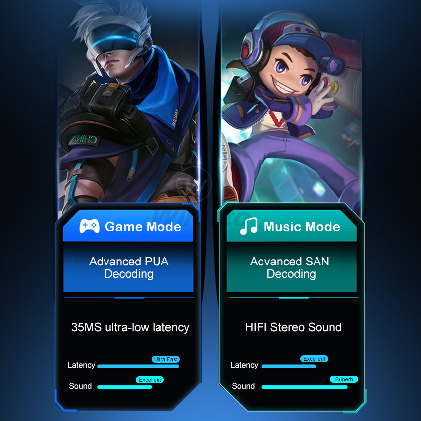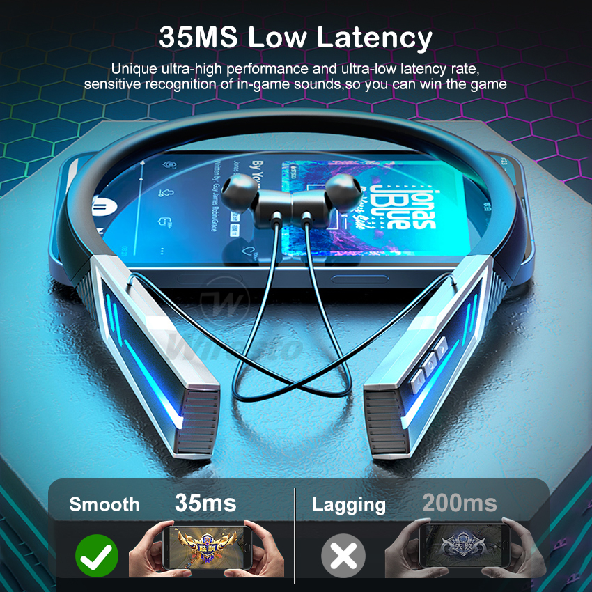 Wiresto TWS Bluetooth 5.0 Earphones 35Ms Latency Professional Gaming Earbuds Neck Hanging Magnetic In-Ear Headphones IPX5 Waterproof Sport Earphone HIFI Stereo Headset Support TF Card with Large Capac