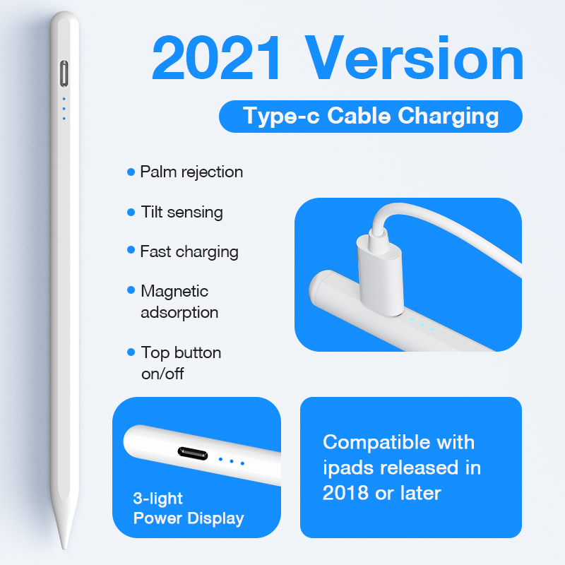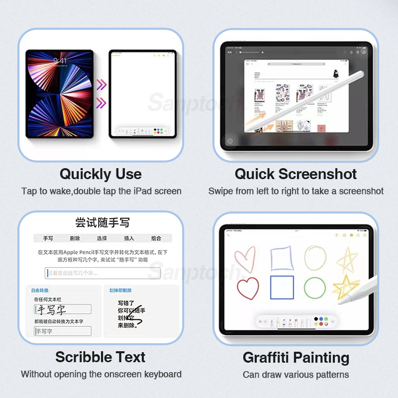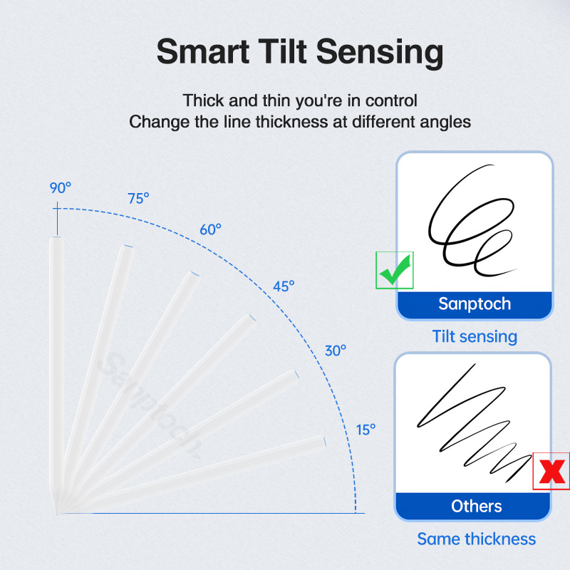 Sanptoch Wireless Charging iPad Pencil For Air 5th 4th Pro 11 12.9 2018-2022 With Palm Rejection & Tilt Sensing Stylus Pen For iPad Mini 6th Gen