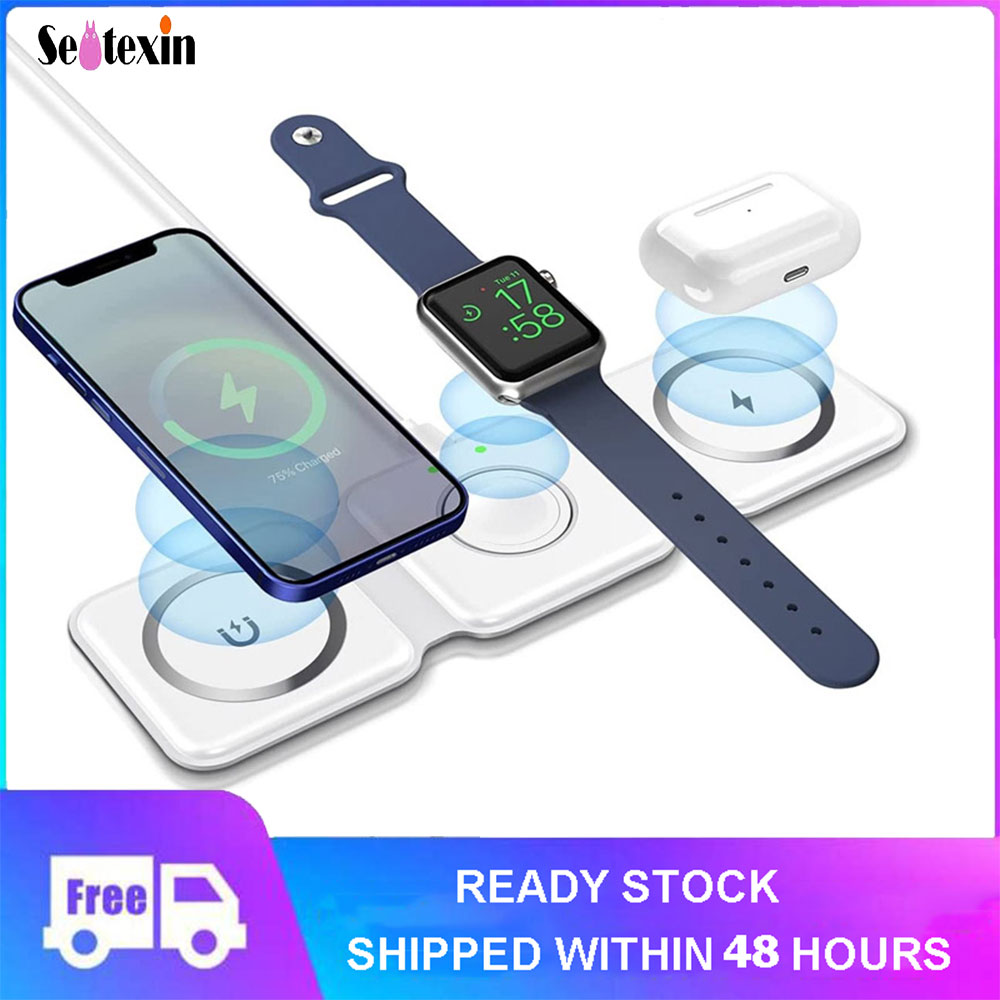 Sentexin Foldable 3 in 1 Fast Wireless Charger 15W Magnetic Charging Station for iPhone 13 12 Pro Max Mini iWatch 7 6 SE AirPods 2 3 Pro