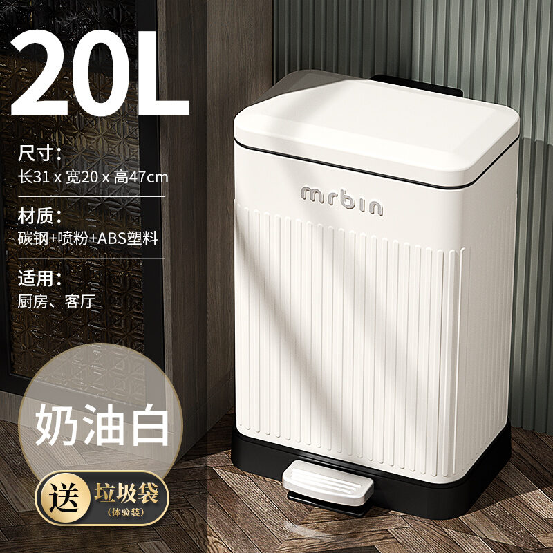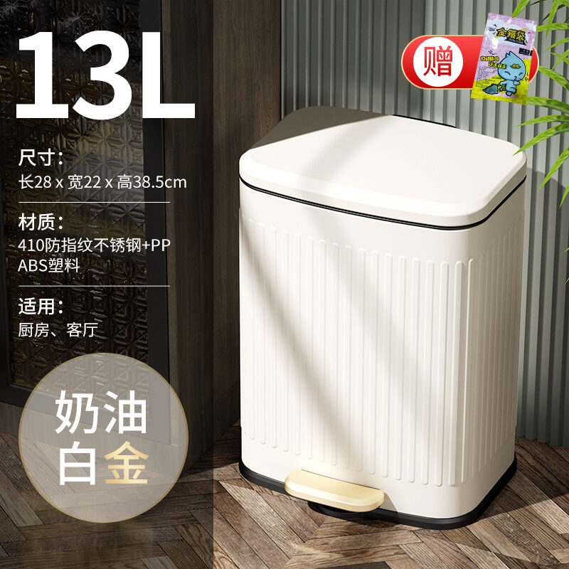 Stainless Steel Trash Can Household Pedal Square 20 Liters Bathroom Kitchen Large 25 Liters Commercial Office Storage