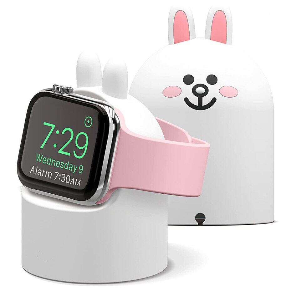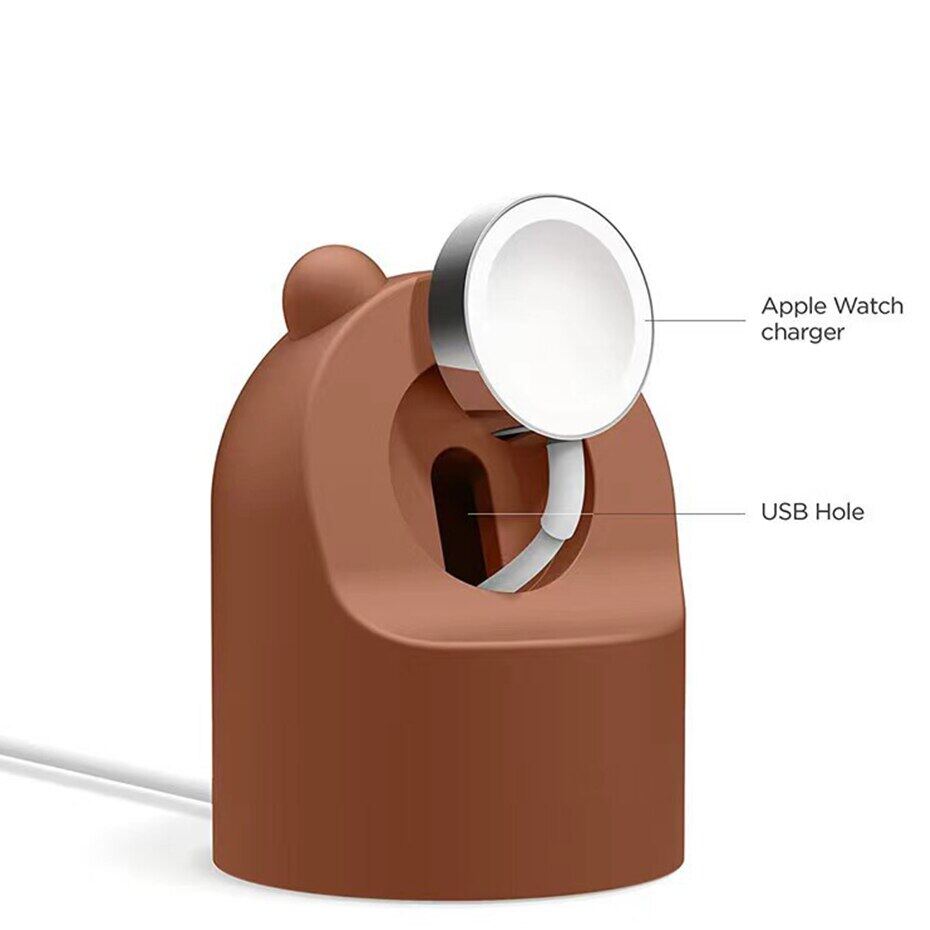 Cute Charger Stand Mount Silicone Duck Bear Dock Holder for Apple Watch Series 7 6 5 4 3 2 SE 44mm/42mm/40mm/38mm Charge Cable