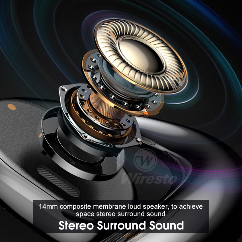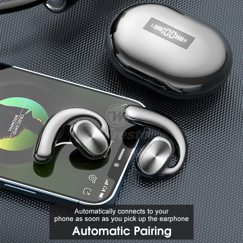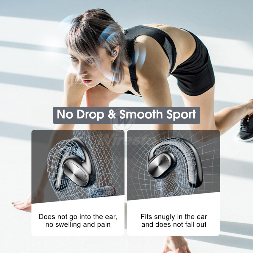 Wiresto TWS Bluetooth Earphone Bone Conduction Bluetooth Headset Ear hook Headphones LED Display 65ms Low Latency Gaming Earbuds Open Ear Wireless Headset HD Stereo Waterproof Sweat-proof