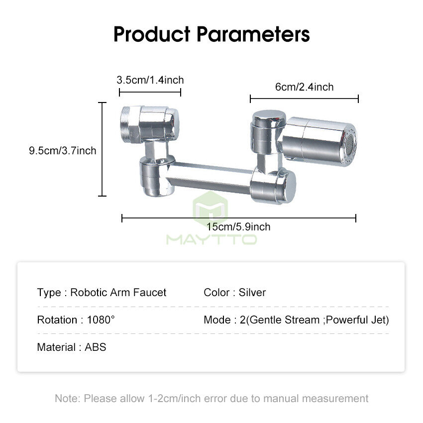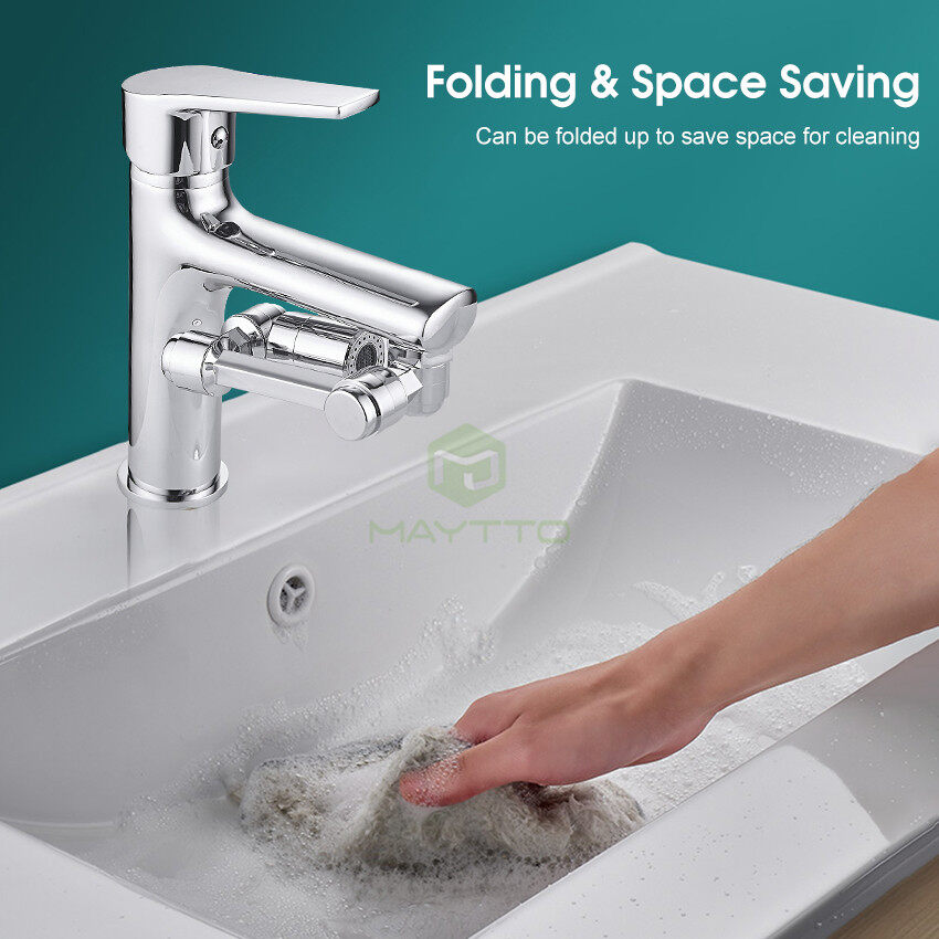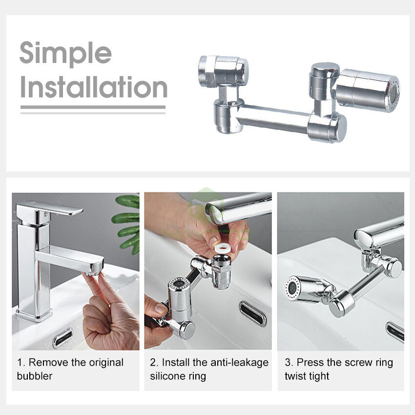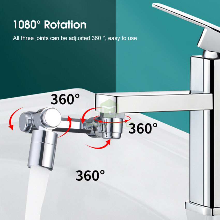 1080°All-round Rotation: 1080°large angle rotation for easy washing. 3 adjustment ports are all adjustable 360° all-round and can be easily bent or folded to reach every corner of the sink for easy cleaning.