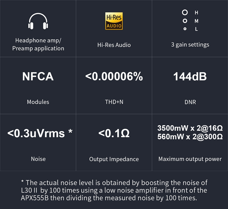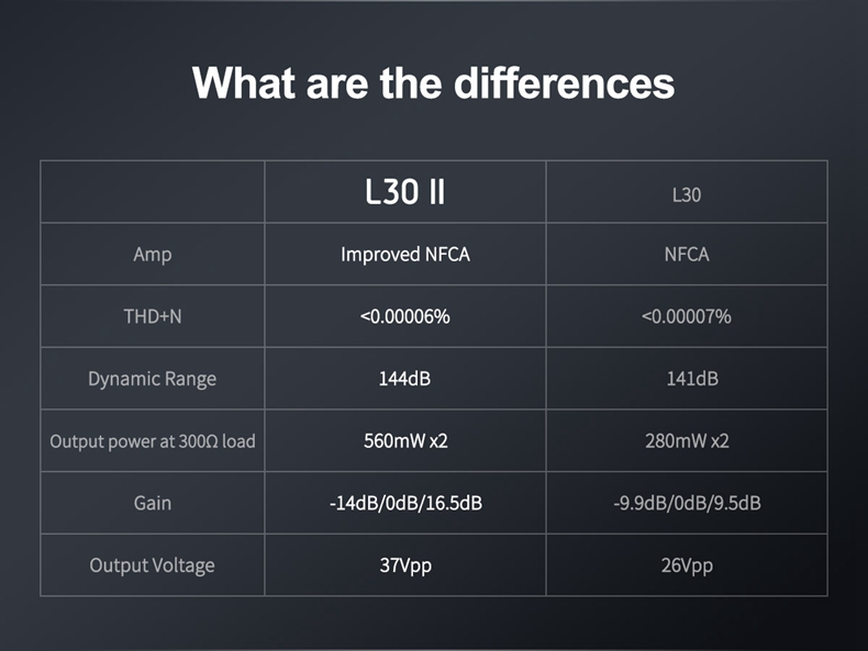 Topping L30 II output has high output voltage, high current, and low output impedance. It is suitable for both low-power requiring IEMs and Headphones as well as high-power requiring demanding headphones and IEMs.