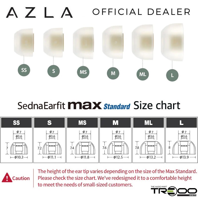 AZLA SednaEarfit MAX Standard Medical Silicone Eartips for Earphones & In-Ear Monitors