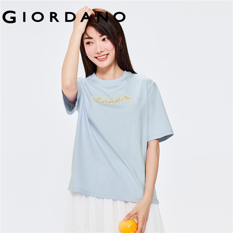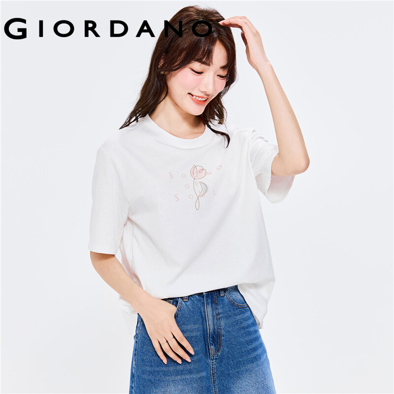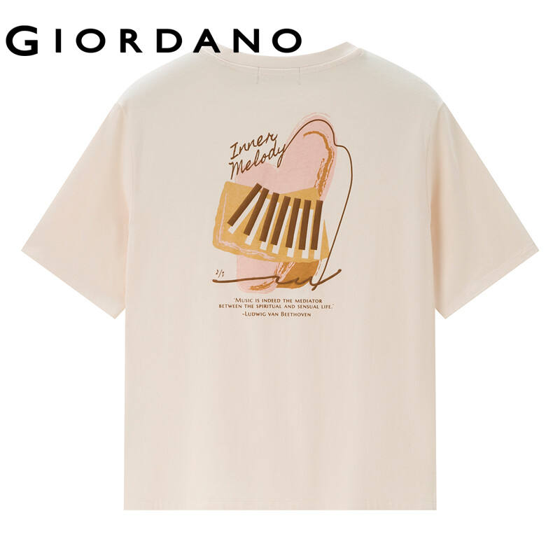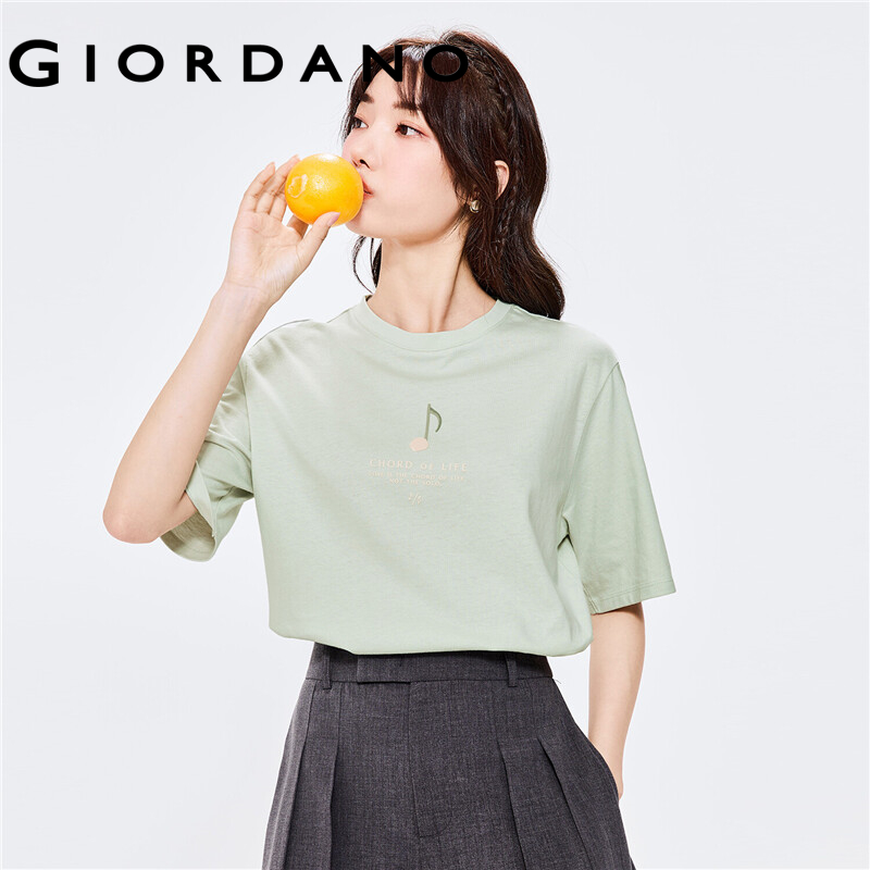 GIORDANO Women T-Shirts Music Print Graphic 100% Cotton Casual T-Shirts Short Sleeve Crewneck Summer Relaxed Simple Tee 05392322
