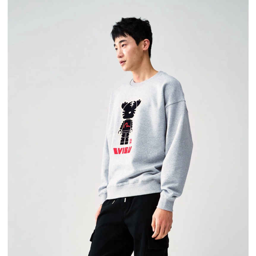 This is an overfit casual man-to-man t-shirt that points evisu's tiger character using froofi techniques and embroidery.