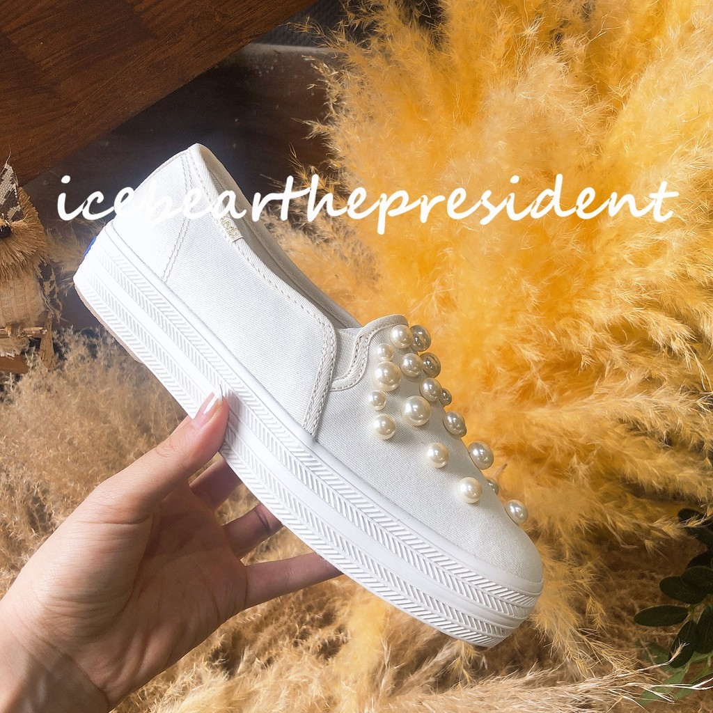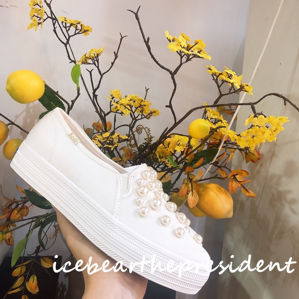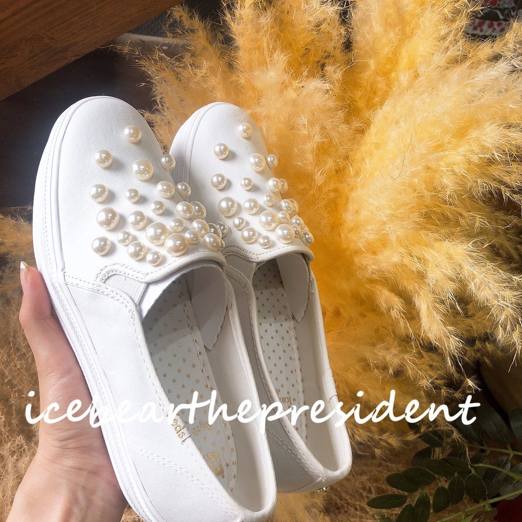 Keds cooperation style handmade pearl thick soled heightening small white shoes wedding shoes Bridesmaid shoes
