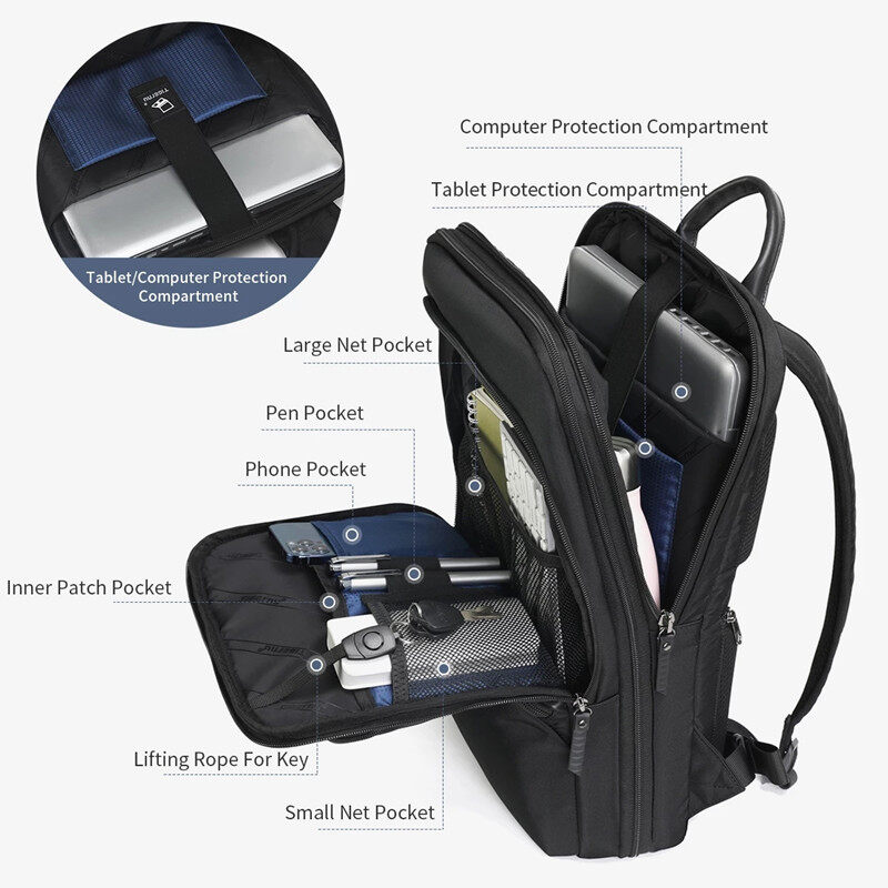 Tigernu Expandable 15.6-inch Laptop Bag Male Ultra-thin Men's Business Backpack for Office Work Waterproof Multifunctional Travel Backpack Fashion School Bags for men
