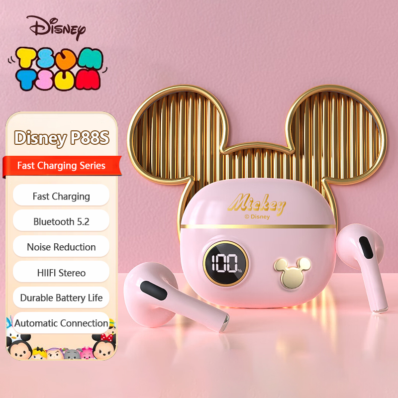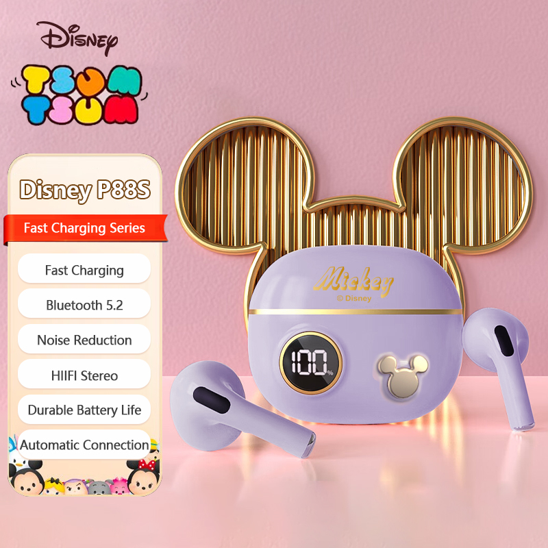 Original Product Disney P88S Wireless Earphones Bluetooth Earphones Gaming headset TWS Sport Headsets Noise Reduction Earbuds HiFi Music Headphones Bluetooth 5.2