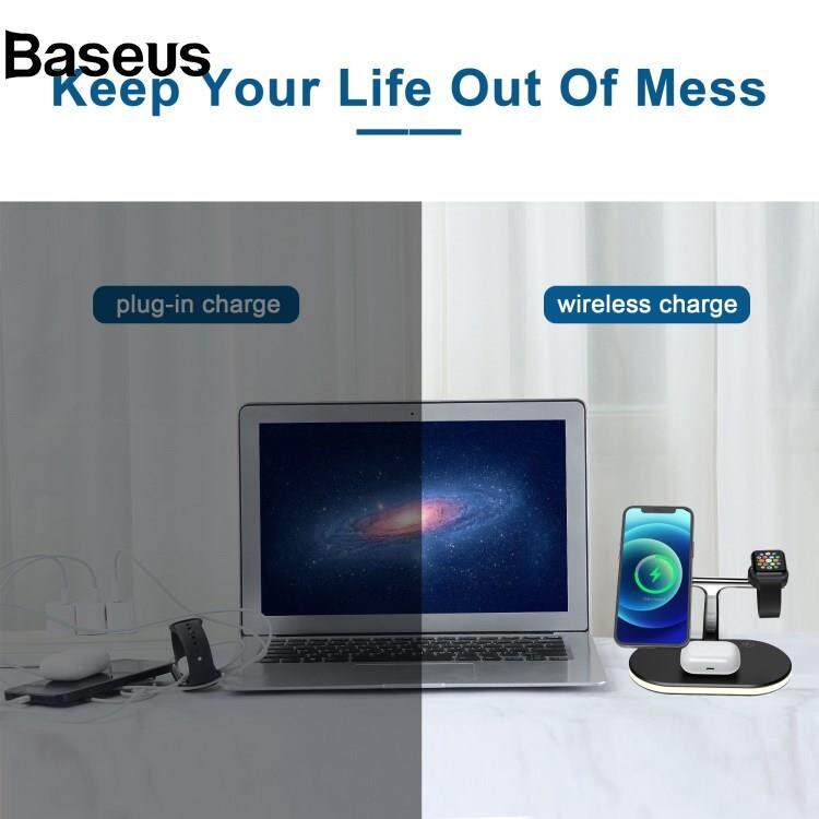 Baseus C300 3 in 1 15W Fast Charging Desktop Station with LED Night Light Magnetic Wirless Charger for Qi-enabled Mobile Phone / AirPods / Apple Watch