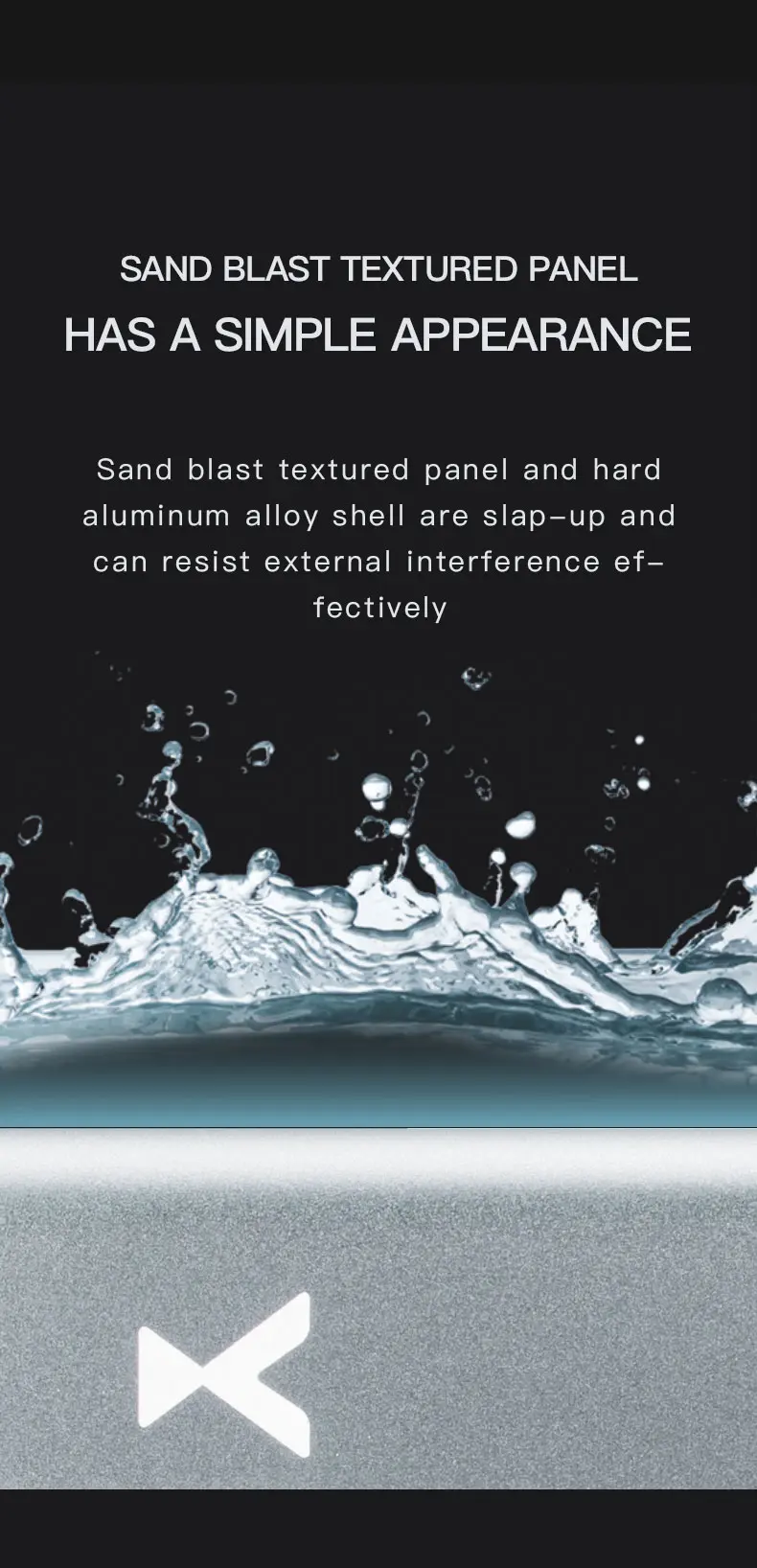 > Sand-blasted textured chassis.