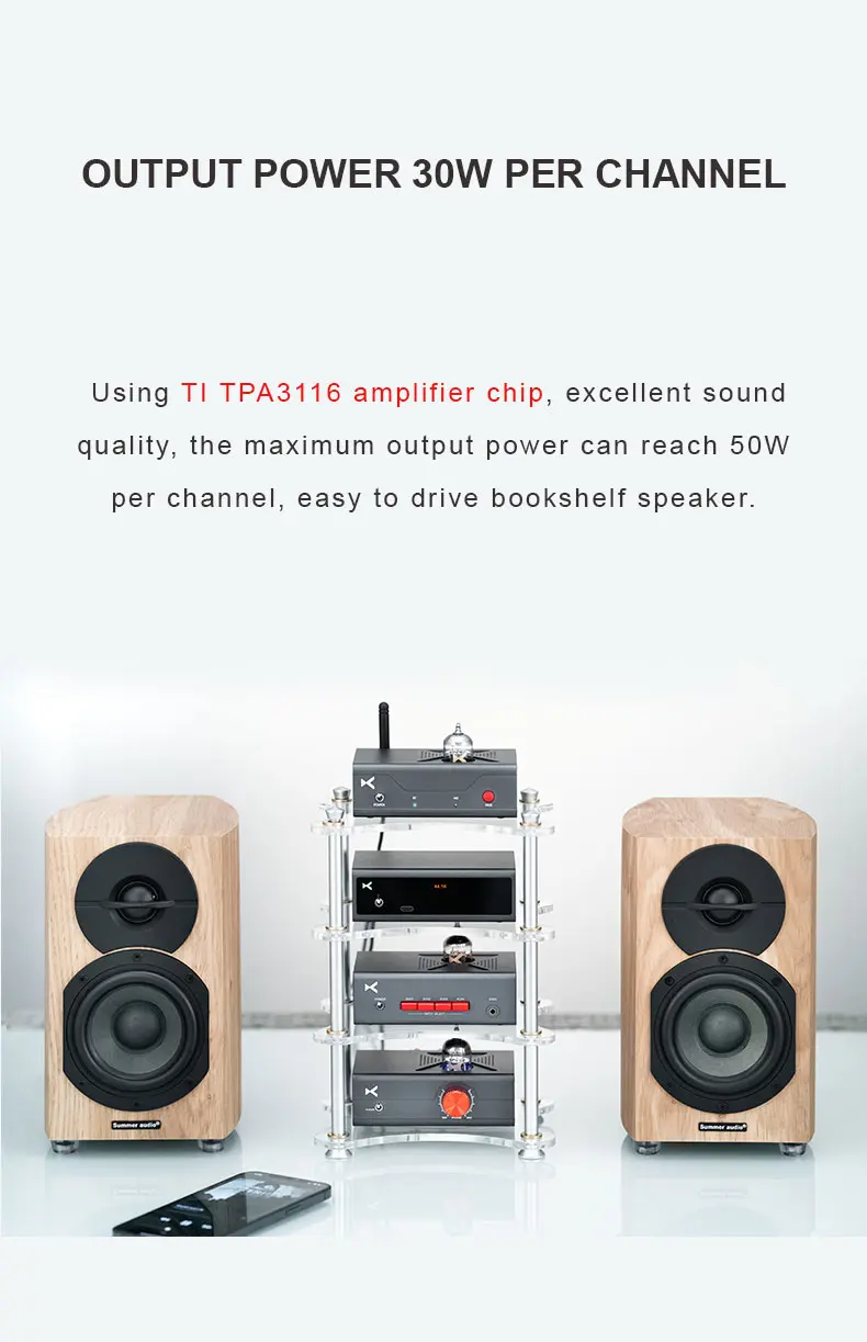 > Adopts high-power Ti TPA3116 power amp chip.