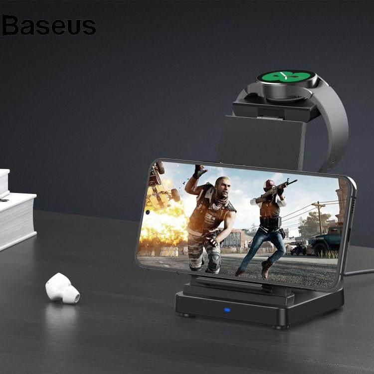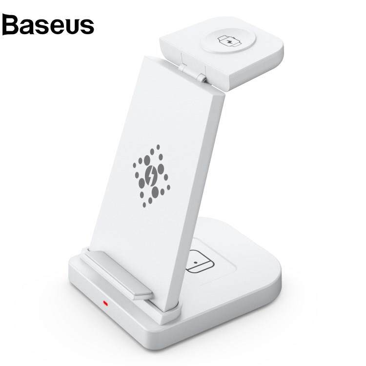 Baseus B-12D 3-in-1 Wireless Charger Desktop Qi Fast Charging Stand Dock for iPhone iWatch AirPods Pro